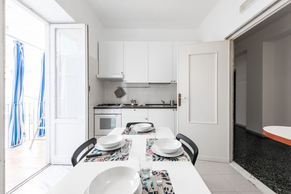 [ITA] Situato al 7° piano con ascensore, luminoso e spazioso (109 mq) appartamento in Zona Porta Nuova (Università). È composto da cucina abitabile, 1 Bagno e 4 stanze singole (di cui 3 "Suite" ed 1 di piccole dimensioni). L'appartamento è ottimamente ristrutturato ed arredato a nuovo in ogni stanza, in funzione di tutto ciò che occorre a studenti e lavoratori. Dotato di cucina e stoviglie nuove, lavatrice, set coprimaterasso-lenzuola-cuscino personali nuovi, linea Wi-Fi - Inquilini: la casa é composta da studenti o giovani lavoratori 20-28 anni. Si tende a mantenere un'occupazione divisa equamente tra inquilini di genere maschile e femminile. Zona Porta Nuova (Università), posizione strategica e ambita: si affitta una bellissima Stanza Singola "Suite". Stanza Semplice ristrutturata ed arreda a nuovo le stanze per offrire comfort e comodità ai propri studenti (e lavoratori). La stanza è dotata di TV Led, letto 1 piazza e mezza, comodino, armadio 3 ante, scrivania con portaoggetti, sedia, tendaggi, specchio, scarpiera, libreria, 1 set personale di cuscino/lenzuola/asciugamani. I colori delle pareti favoriscono il buon umore e aiutano sia nello studio, che nel riposo. Stanza Semplice propone il concetto di ALL INCLUSIVE: affitto, gas, energia elettrica, luce, acqua, rifiuti, condominio. Paghi 1 solo importo e pensiamo a TUTTO noi! Arredi: Armadio a 3 ante, Libreria, Scrivania, Specchio, Letto una piazza e mezzo, Sedia, Lampada da tavolo, Scarpiera, Poltroncina, Appendiabiti, [ENG] Located on the 7th floor with lift, bright and spacious (109 sqm) apartment in the Porta Nuova area (University). It consists of a kitchen, 1 bathroom and 4 single rooms (including 3 "Suites" and 1 small). The apartment is excellently renovated and newly furnished in every room, according to everything students and workers need. Equipped with new kitchen and crockery, washing machine, new personal mattress cover-sheets-pillow set, Wi-Fi line - Tenants: The house is composed of students or young workers 20-28 years old. There is a tendency to maintain an equal split between male and female tenants. Porta Nuova area (University), strategic and sought-after position: we rent a beautiful Single Room "Suite". Simple room renovated and refurbished the rooms to offer comfort and convenience to its students (and workers). The room is equipped with LED TV, queen-size bed, bedside table, 3-door wardrobe, desk with storage, chair, curtains, mirror, shoe rack, bookcase, 1 personal set of pillows / sheets / towels. The colors of the walls promote a good mood and help both in the study and in the rest. Simple room proposes the concept of ALL INCLUSIVE: rent, gas, electricity, electricity, water, waste, condominium. Pay only 1 amount and we'll take care of EVERYTHING! Furniture: Wardrobe with 3 doors, Bookcase, Writing desk, Mirror, Queen size bed, Chair, Table lamp, Shoe rack, Small armchair, Clothes hangers, [ITA] POLICY DI RECESSO: Nessun costo di disdetta fino a 45 giorni dalla data di check in, 170€ di costi per disdette richieste successivamente. - Residenza: É possibile prendere la residenza in questo appartamento. [ENG] CANCELLATION POLICY: No cancellation fee up to 45 days from the date of check in, 170€ costs for cancellations requested after that. -Residence: It is possible to take up residence in this apartment.