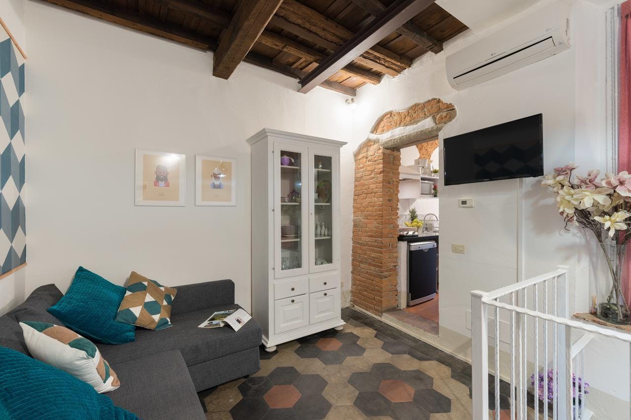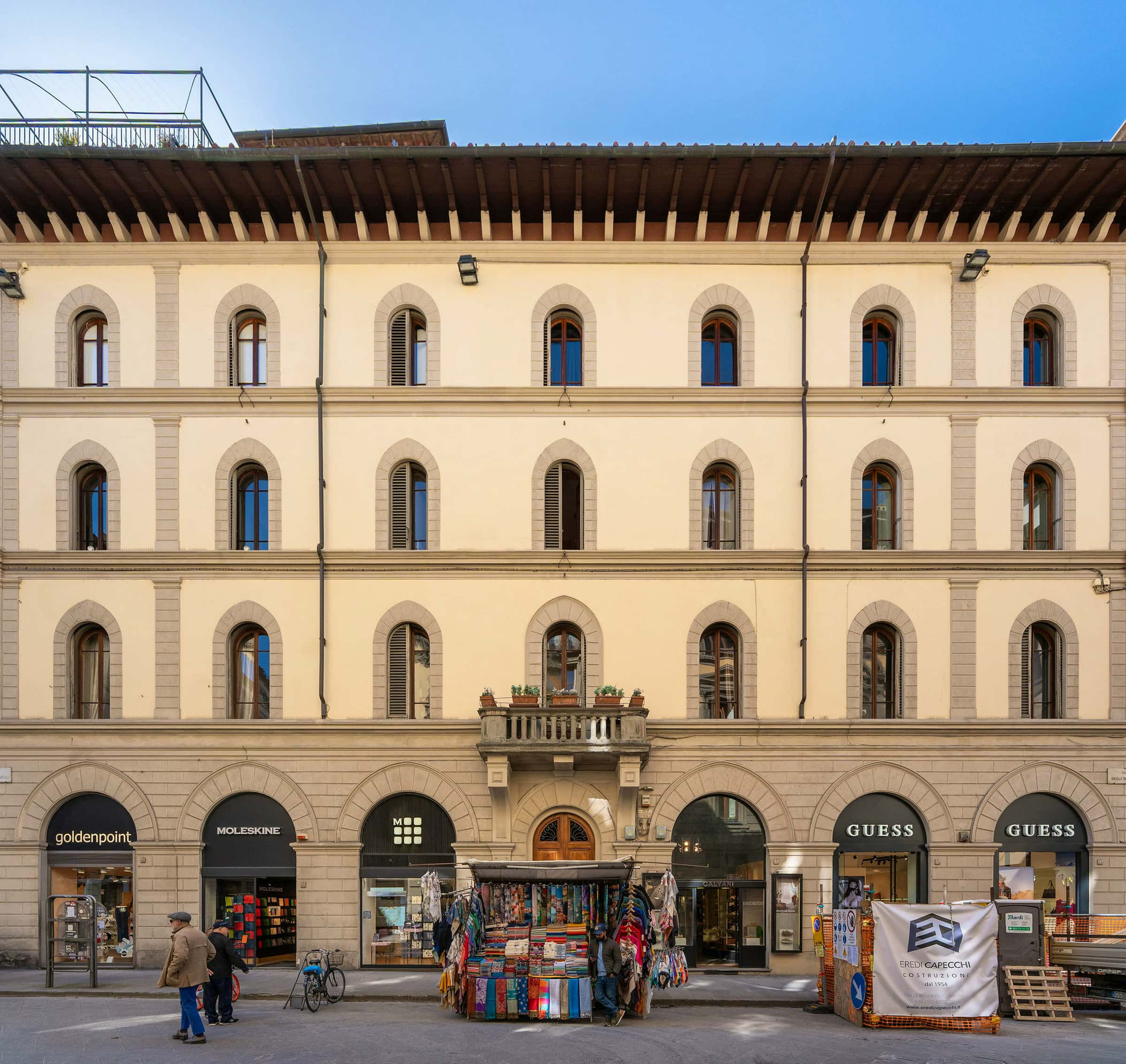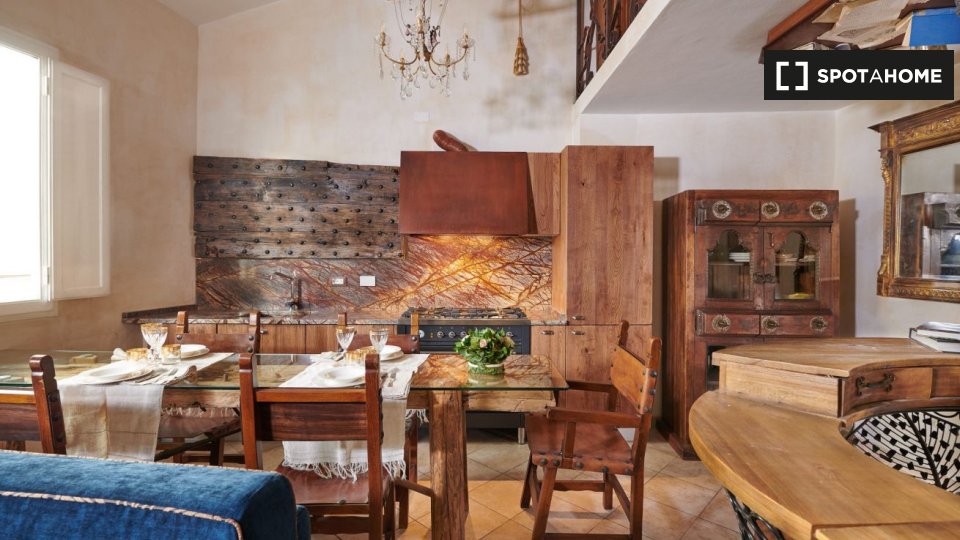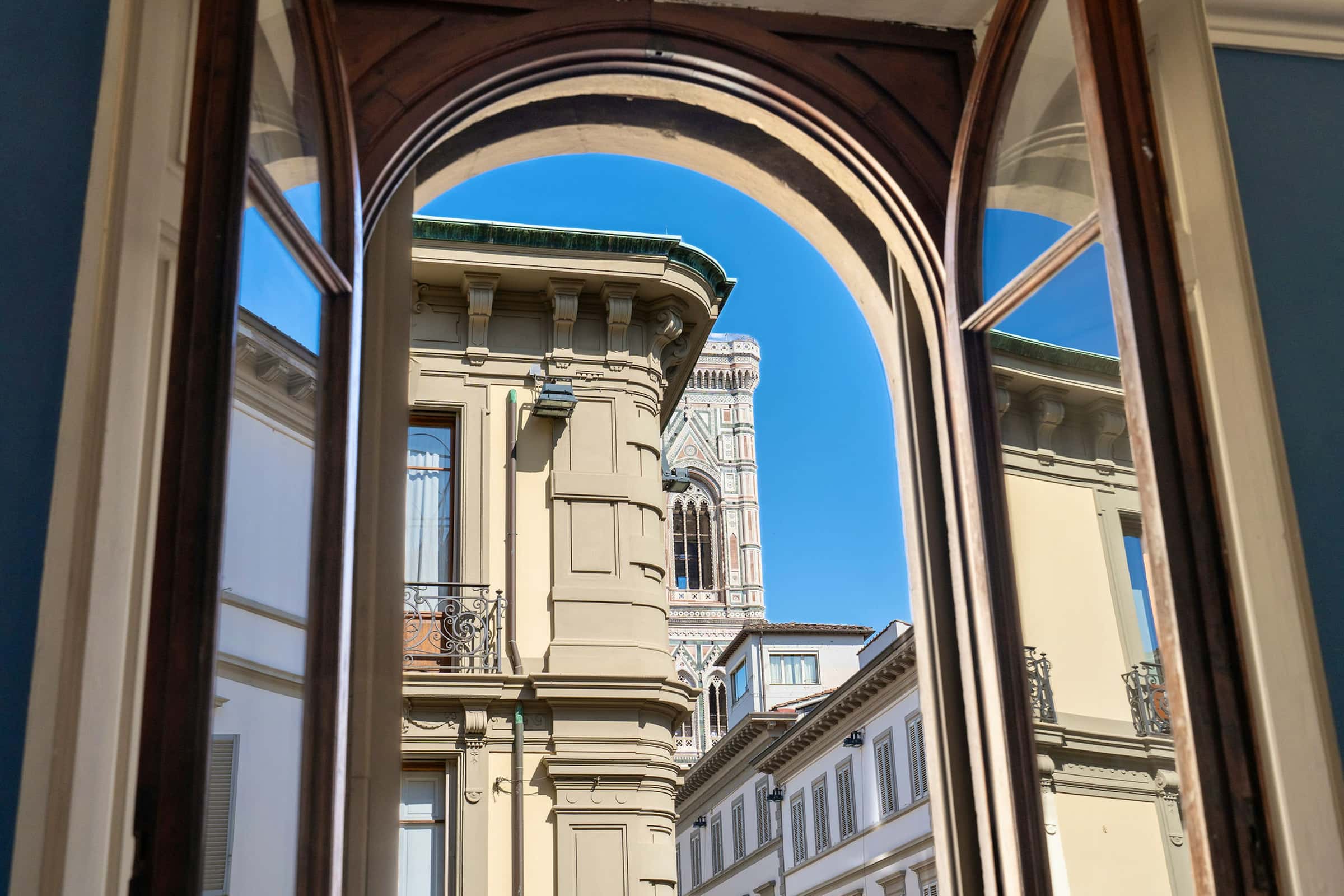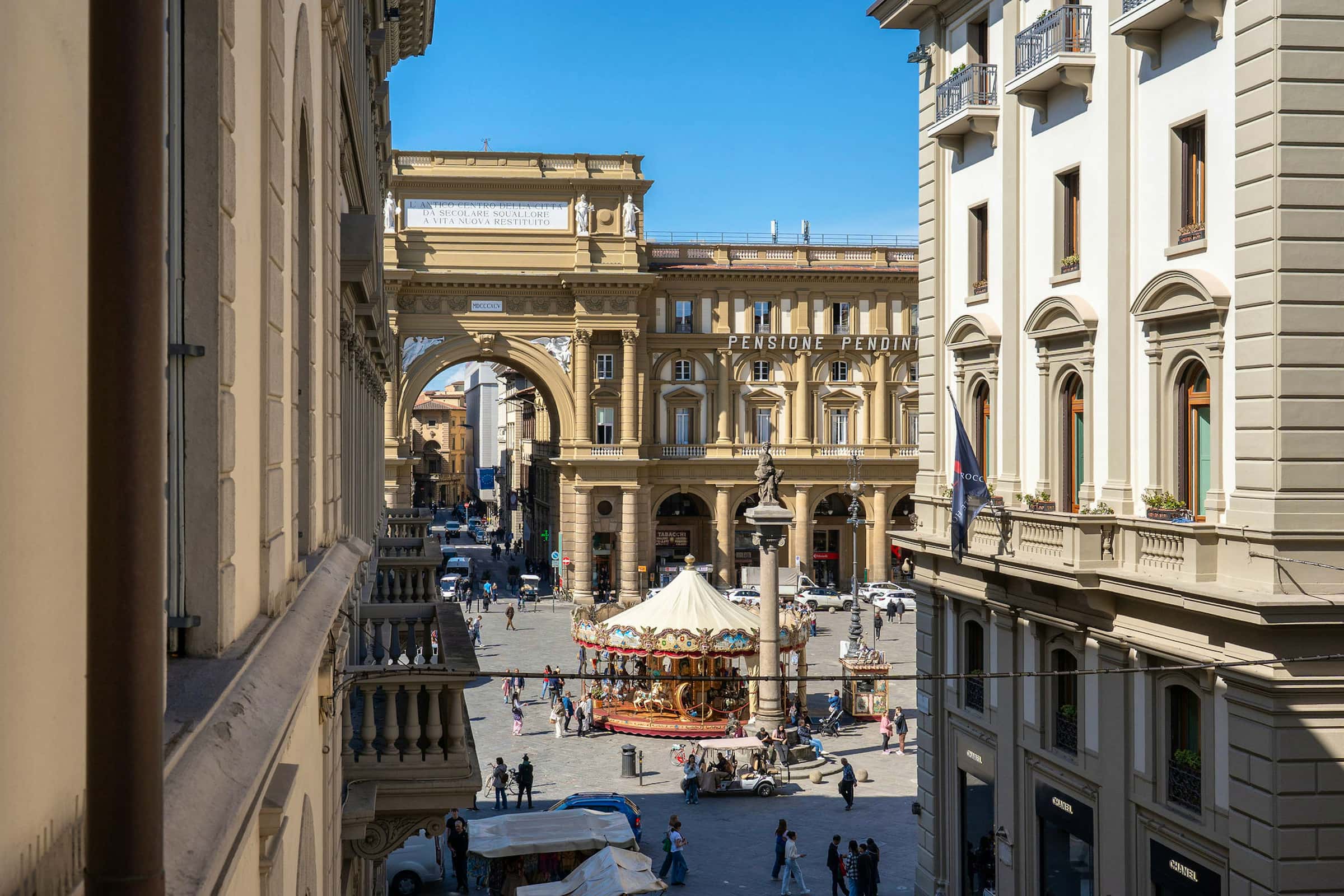 New, elegant, finely restored penthouse on the banks of the Arno between Via Tornabuoni and Ponte Vecchio. Bright and quiet, it enjoys a delightful fully furnished terrace with possible cover. A charming corner in the heart of the fashion district.