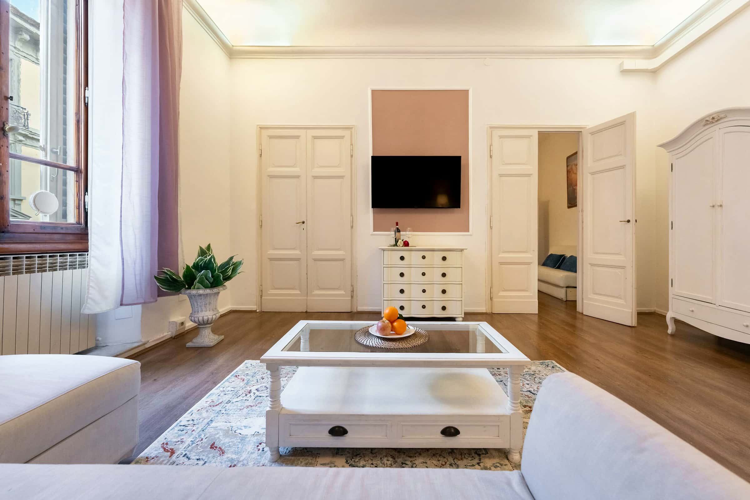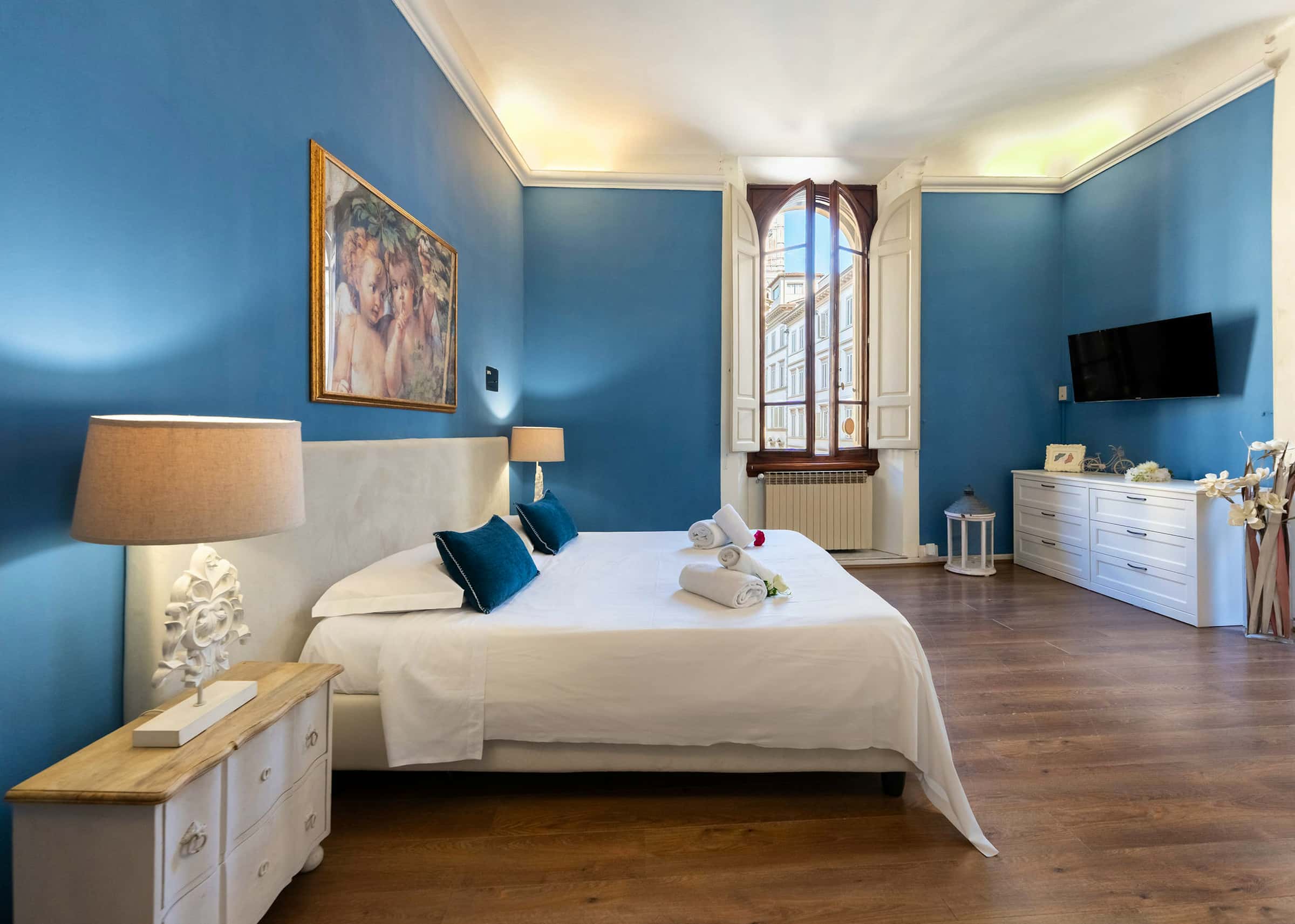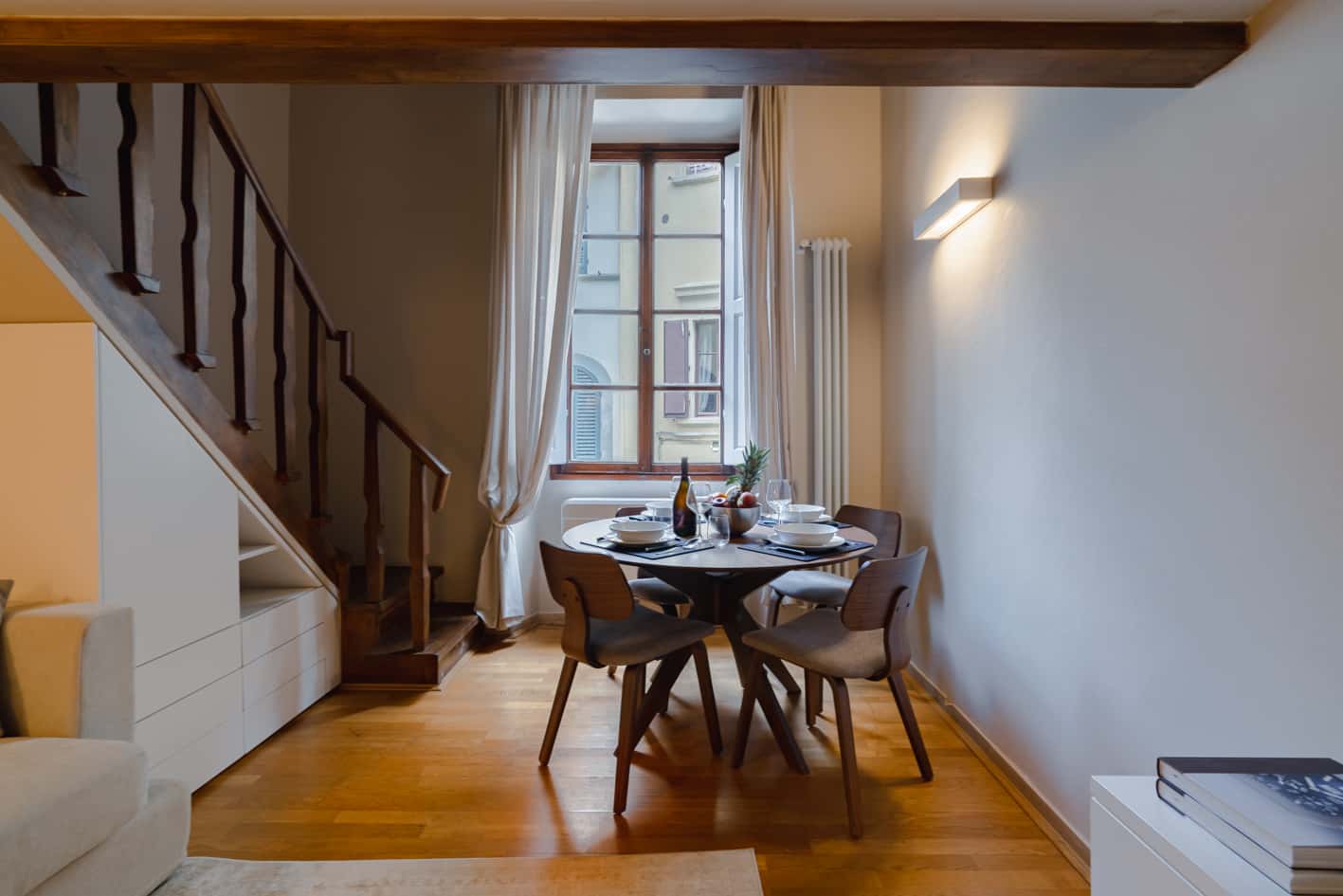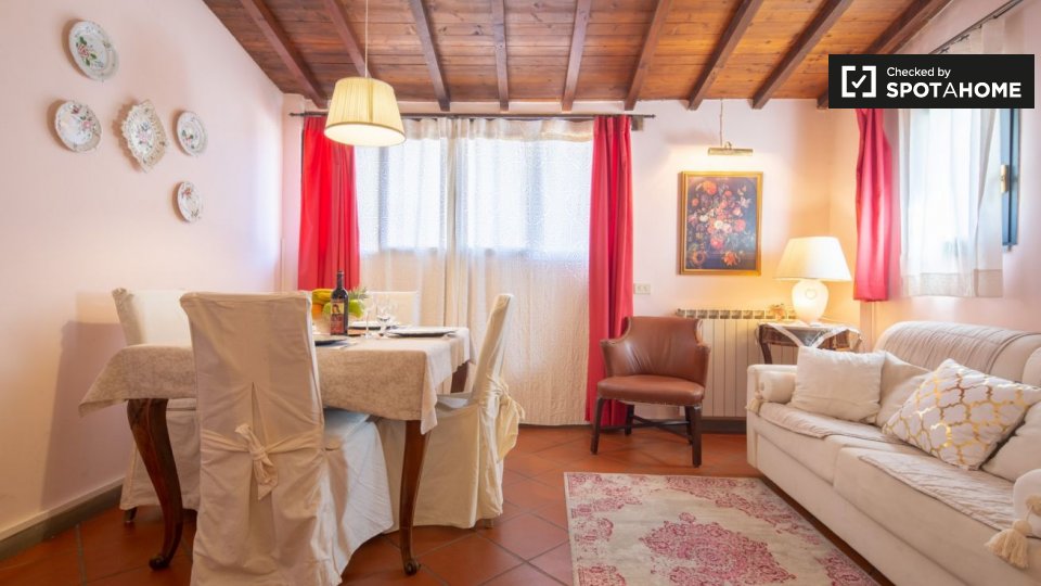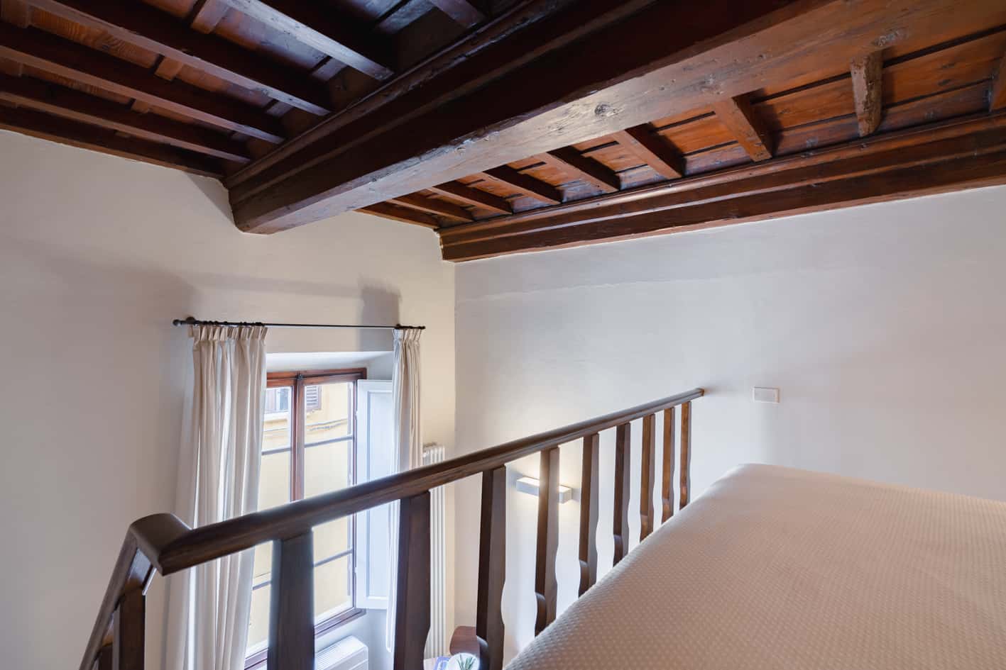 New, elegant, finely restored penthouse on the banks of the Arno between Via Tornabuoni and Ponte Vecchio. Bright and quiet, it enjoys a delightful fully furnished terrace with possible cover. A charming corner in the heart of the fashion district.