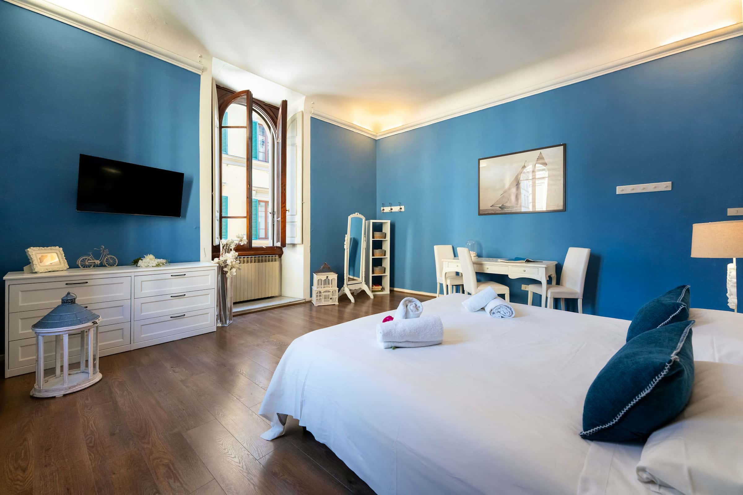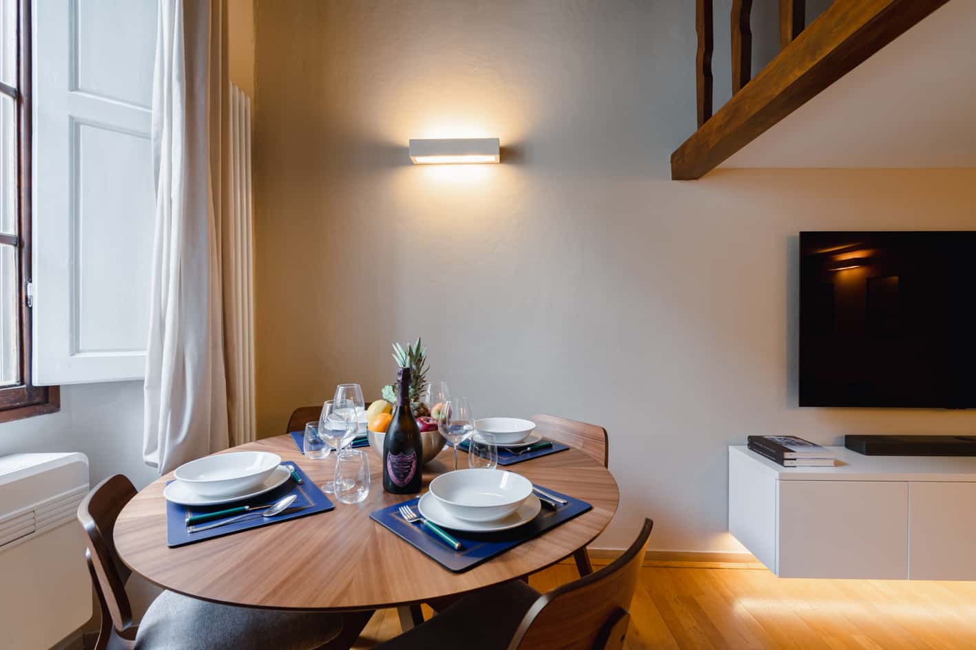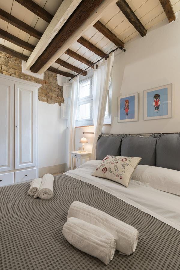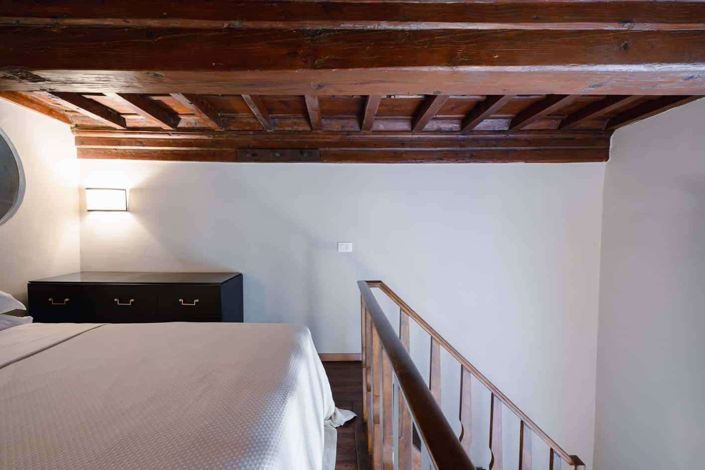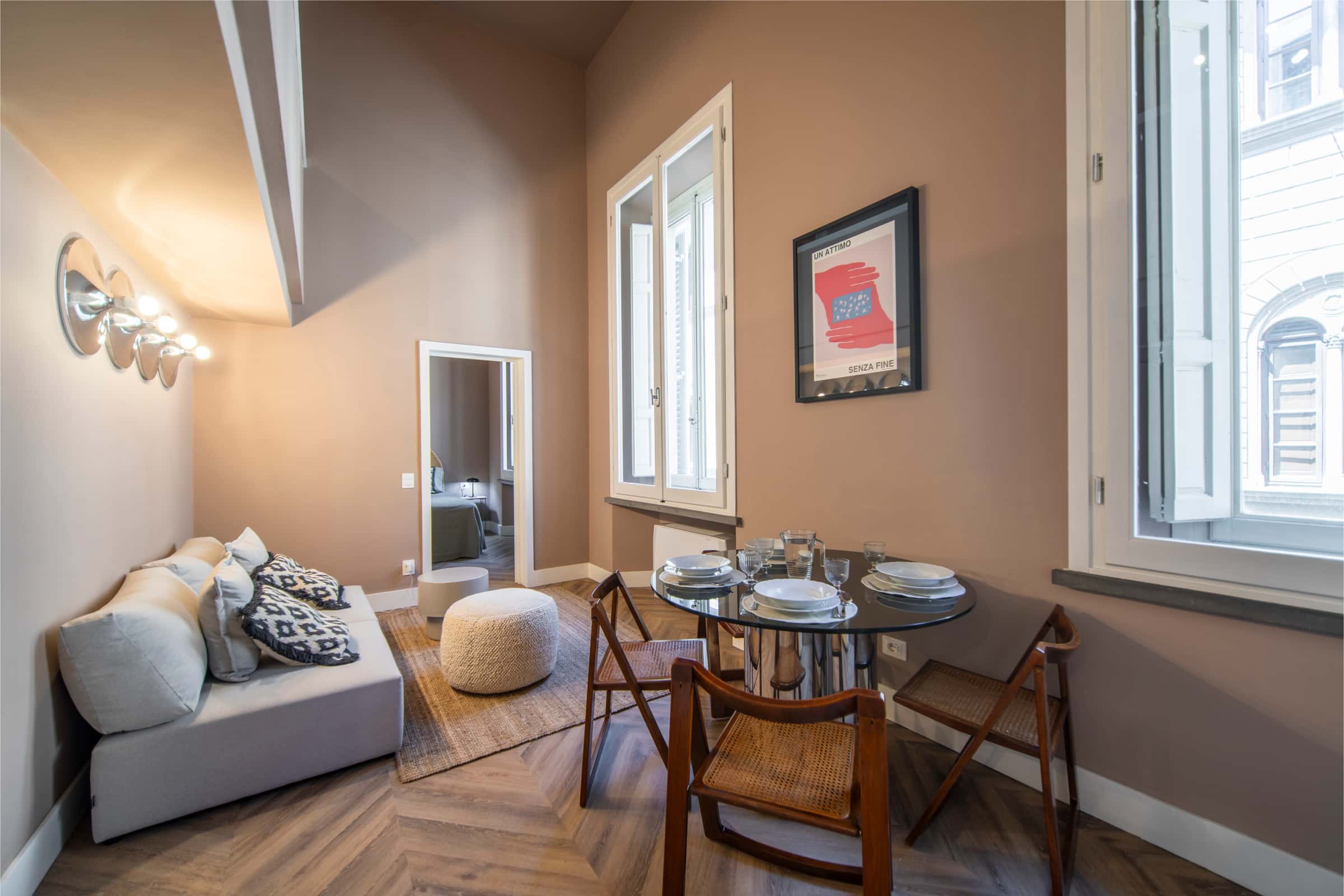 New, elegant, finely restored penthouse on the banks of the Arno between Via Tornabuoni and Ponte Vecchio. Bright and quiet, it enjoys a delightful fully furnished terrace with possible cover. A charming corner in the heart of the fashion district.
