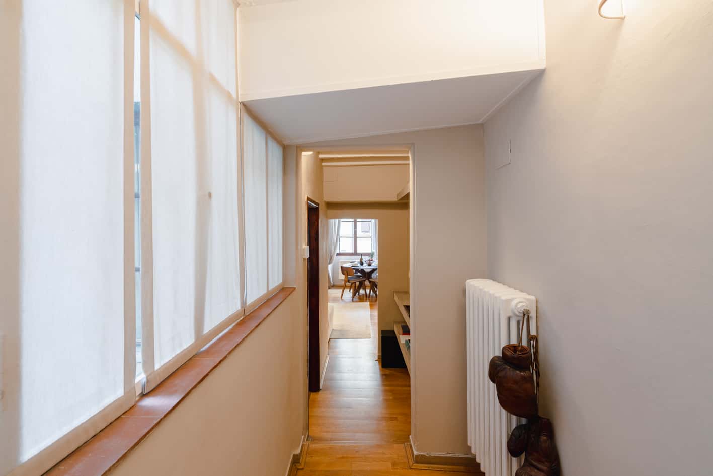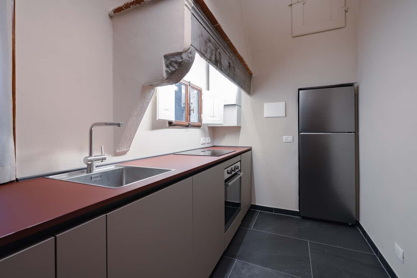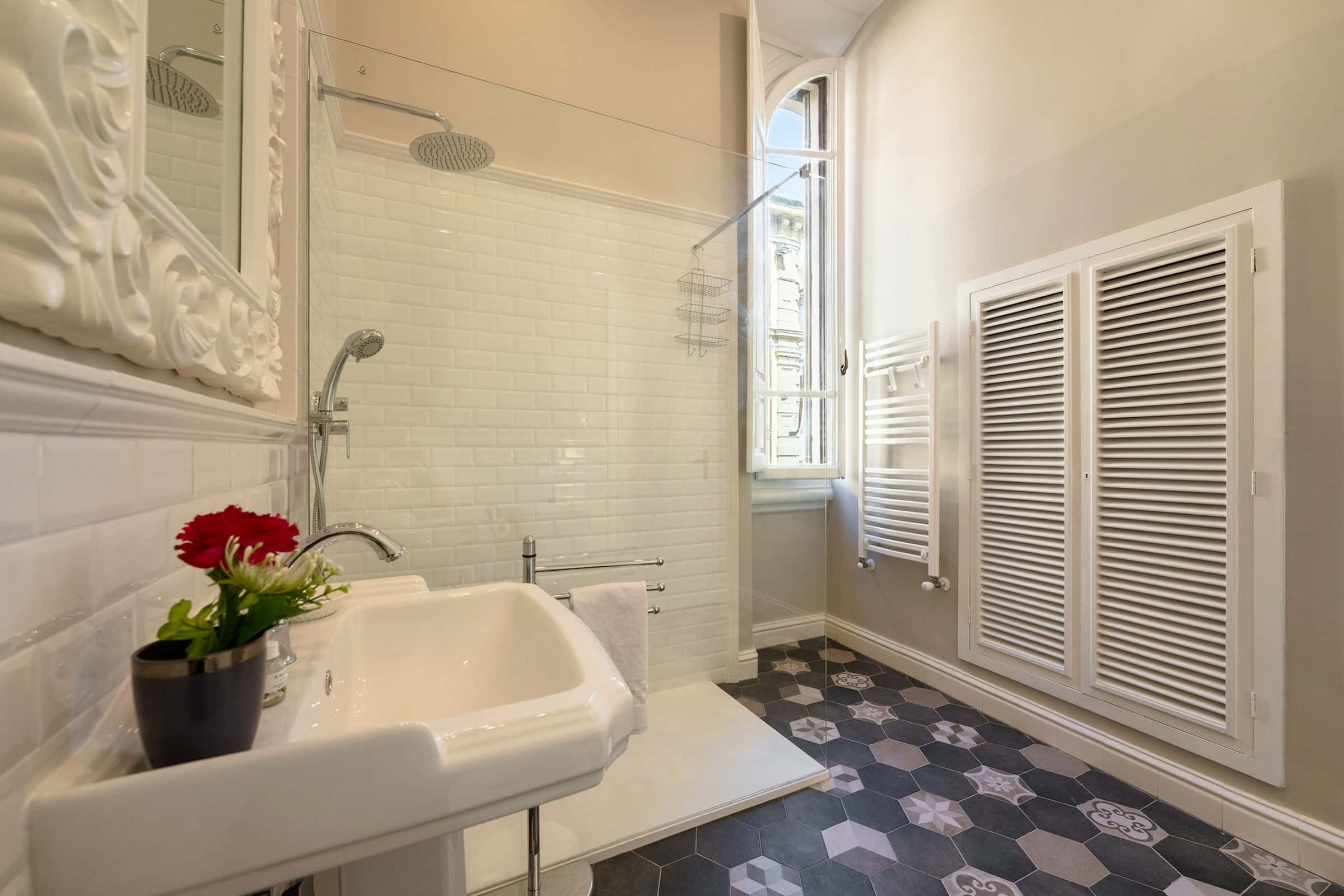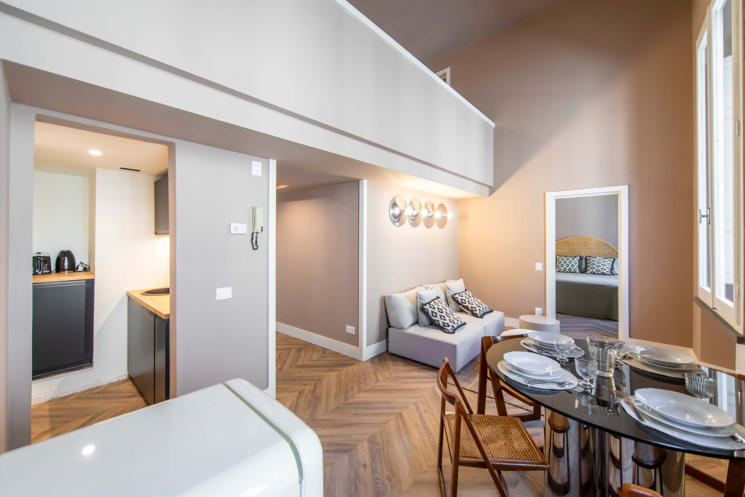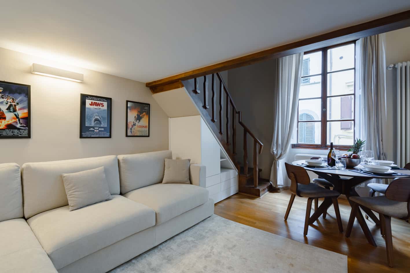 New, elegant, finely restored penthouse on the banks of the Arno between Via Tornabuoni and Ponte Vecchio. Bright and quiet, it enjoys a delightful fully furnished terrace with possible cover. A charming corner in the heart of the fashion district.