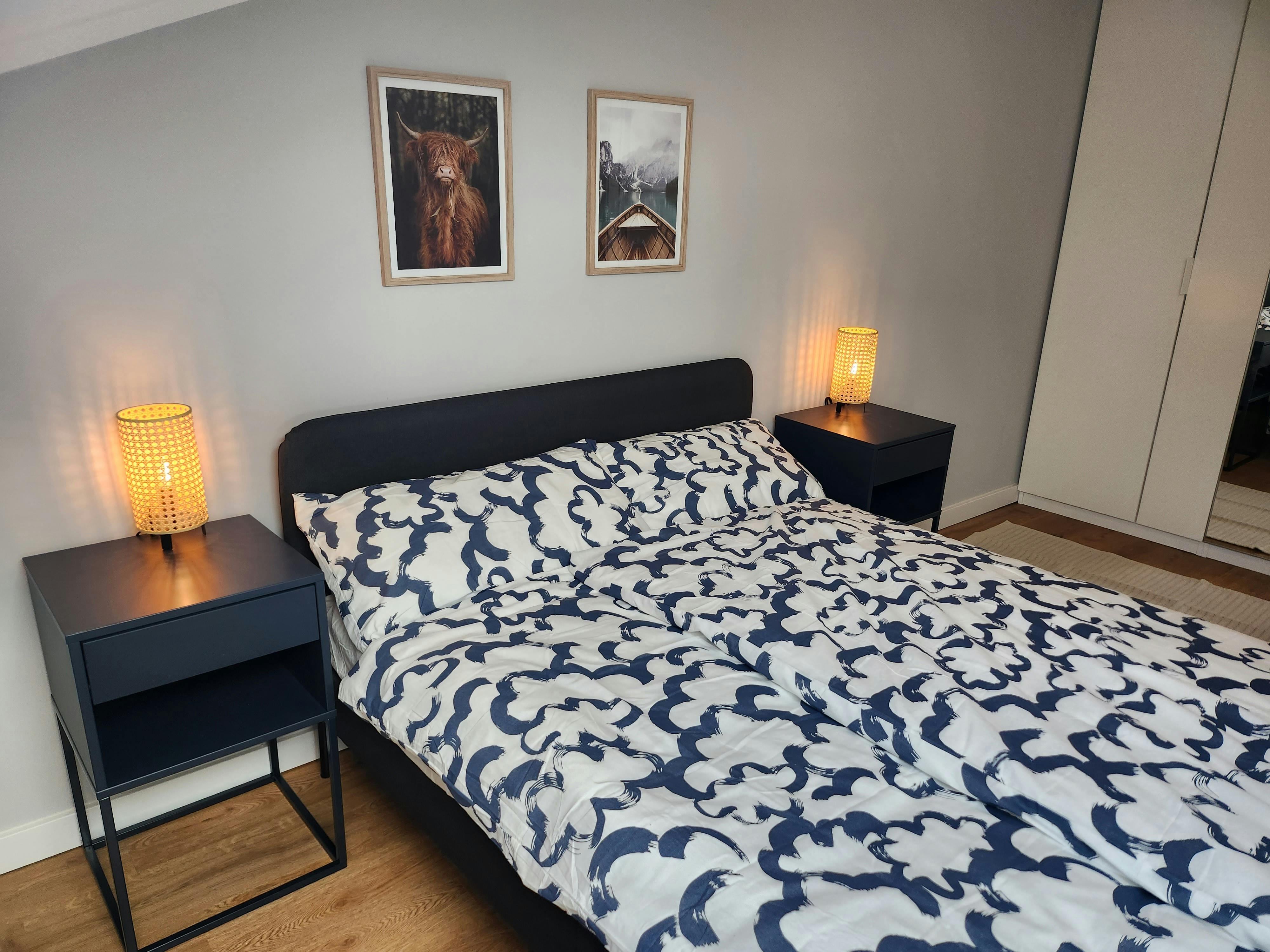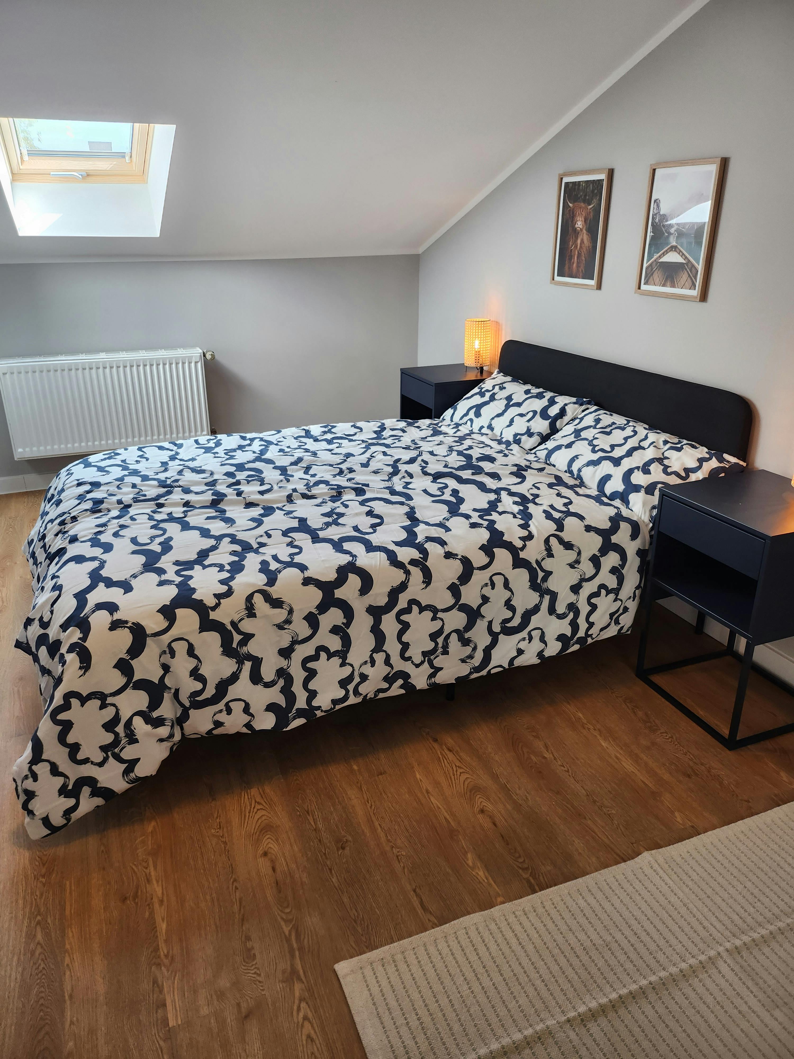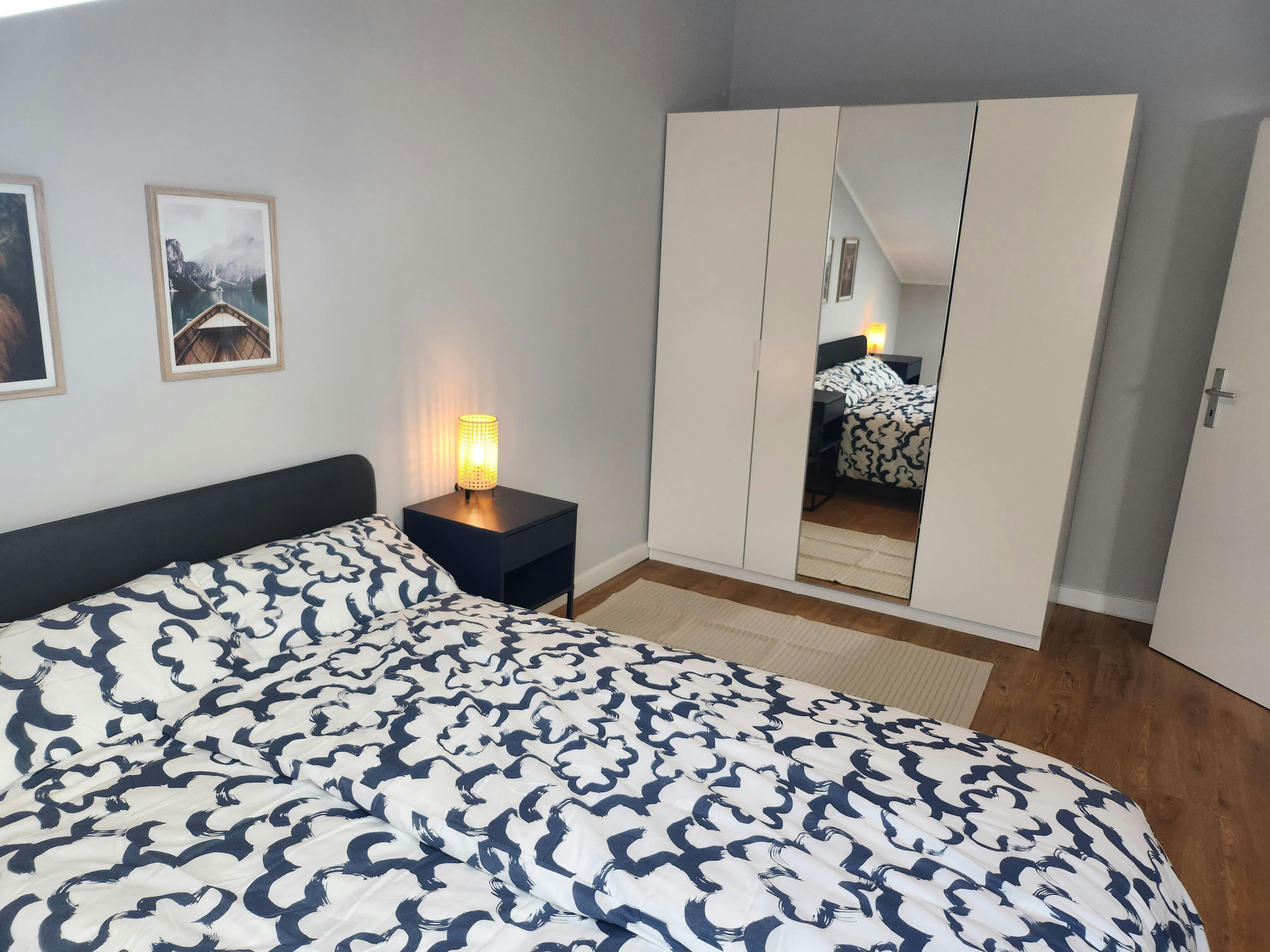 To your left, you'll discover the bathroom, equipped with everything you need for a comfortable stay. Whether you prefer a refreshing shower or a relaxing soak in the tub, you'll find both options available. Additionally, a washing machine is provided for your convenience, and fresh towels await you.