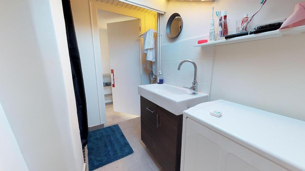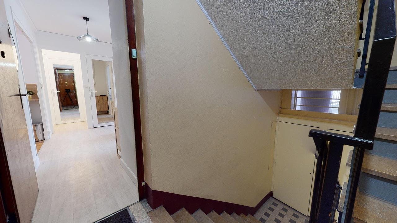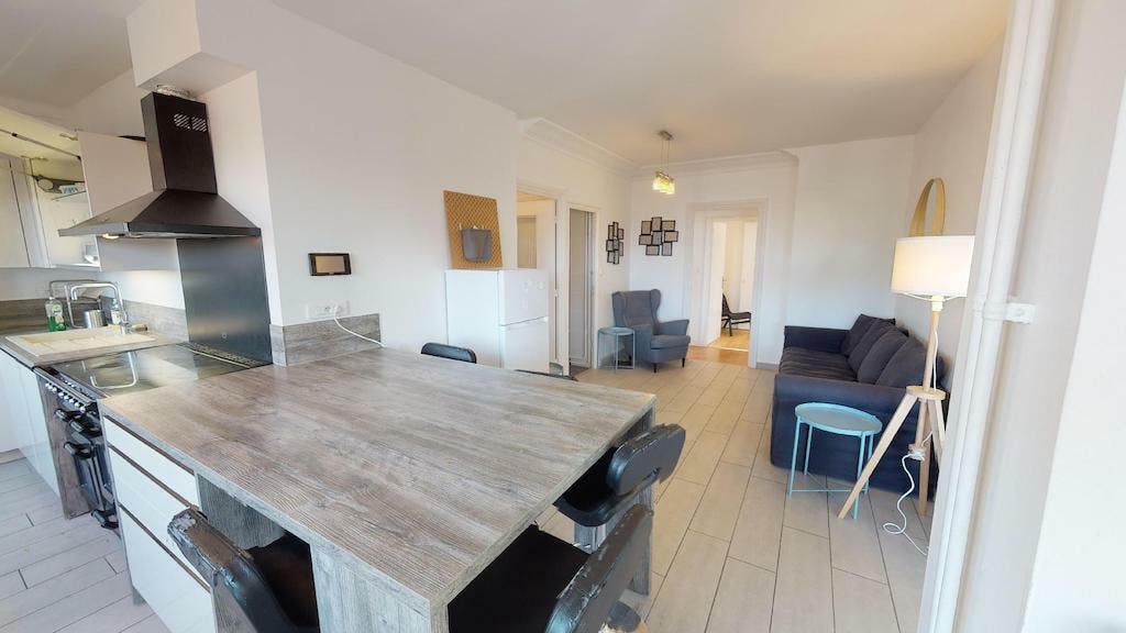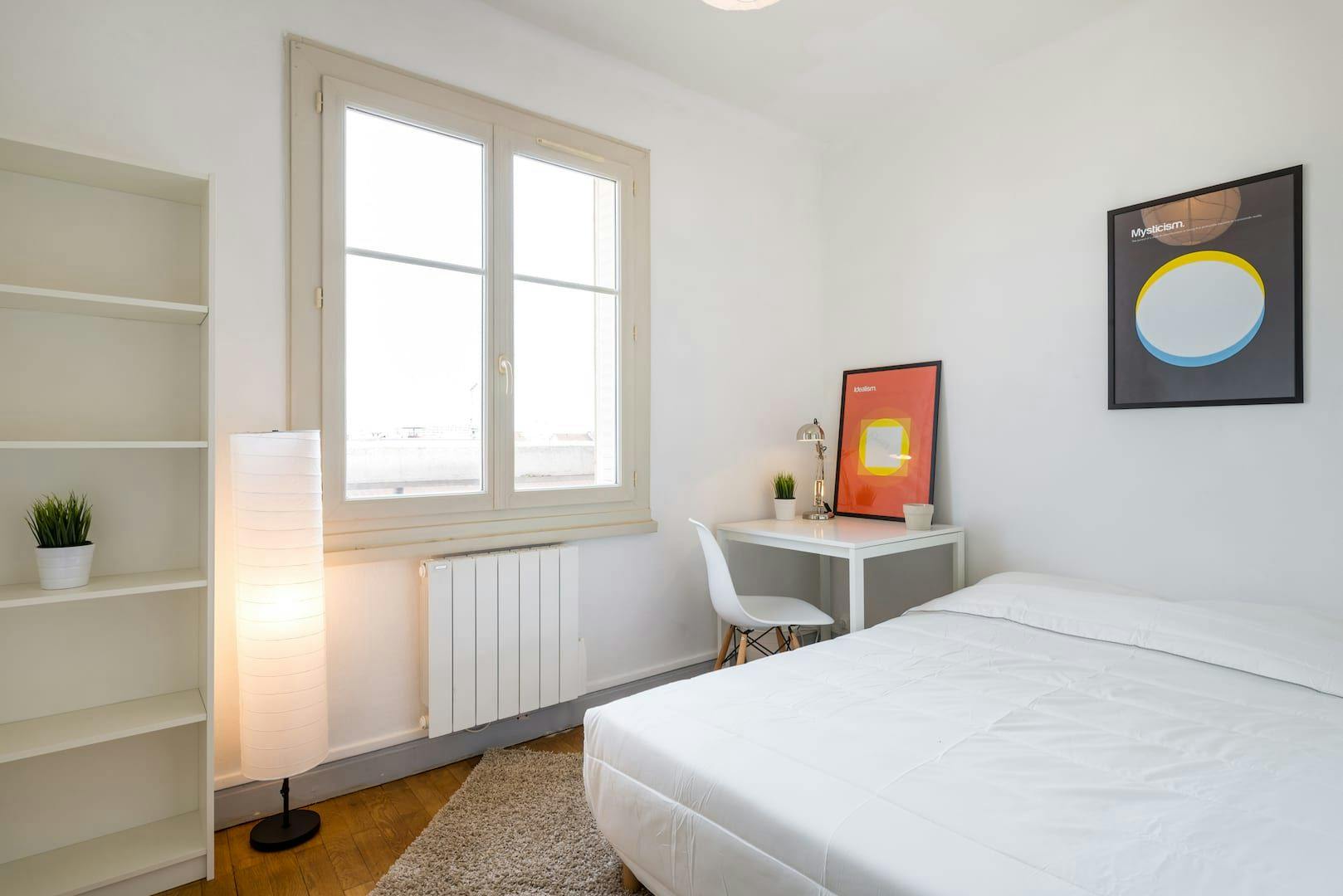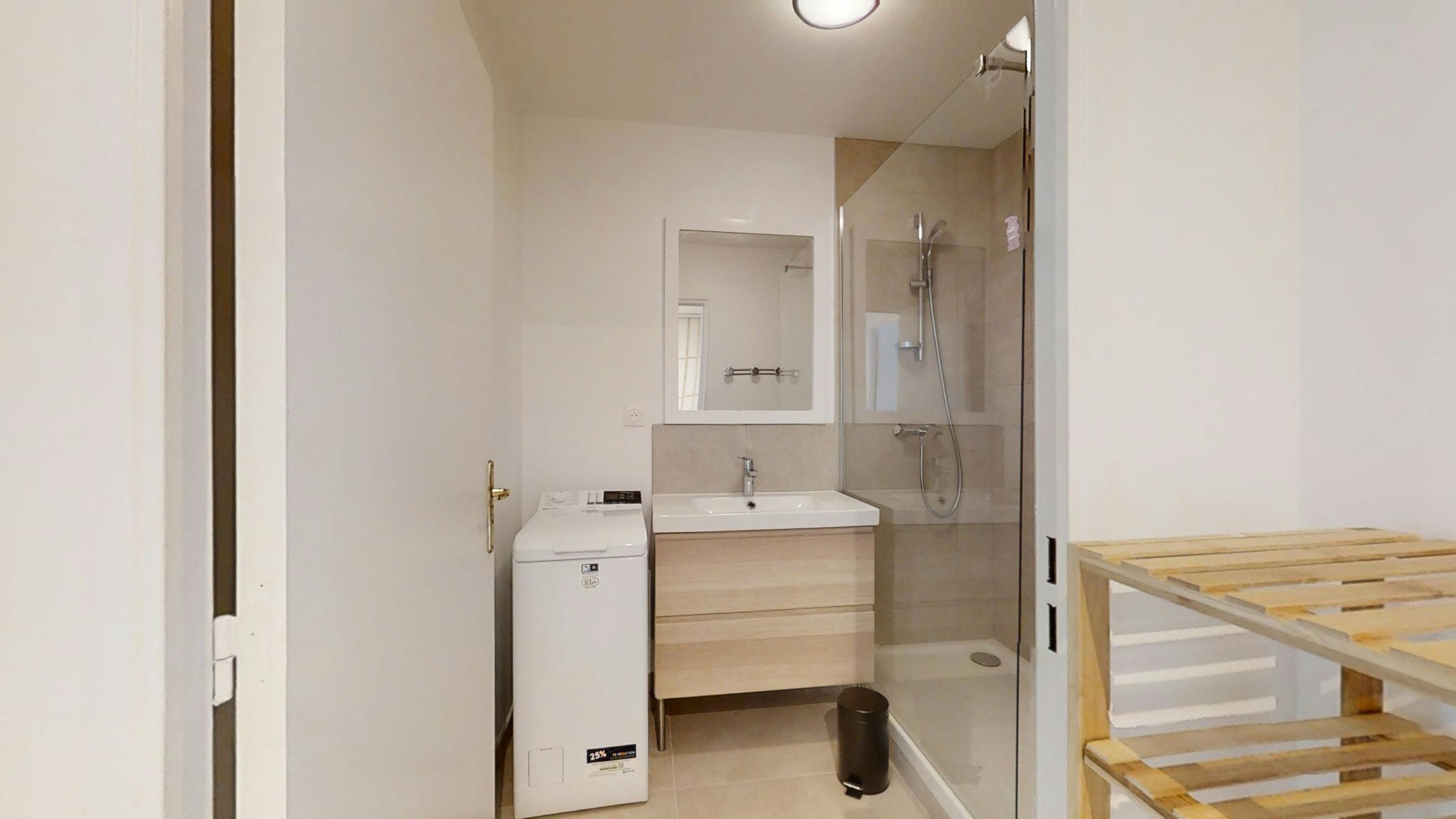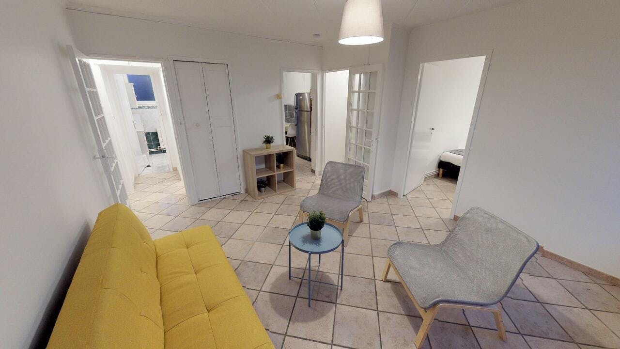 This lovely private bedroom in a fully equipped, furnished and all-inclusive flatshare in Lyon is a mix of comfort and design. It has got household furnishings, including a bed with pillows and duvet What is missing is your things to feel at home! The room can be locked if you need intimacy. The flatshare can be found in the Monchat neighborhood, in the heart of Lyon. Plenty of shops, public transports, restaurants are accessible close by. The apartment is on floor 0 without lift. It is entirely equipped and is composed of a large kitchen with refrigerator, microwave, pans, crockery, kitchen ustensils, kettle... The accommodation also contains an ironing board, a washing machine, a clothes rack, an iron. Additionally, you will find cleaning items in the accommodation: bagless hoover, dustpan and brush, broom, mop and bucket... Every Joivy furnished flatshare includes all expenses: housing insurance, water, electricity, unlimited wi-fi, condominium fees, household waste tax.
