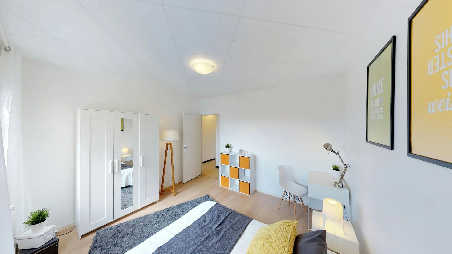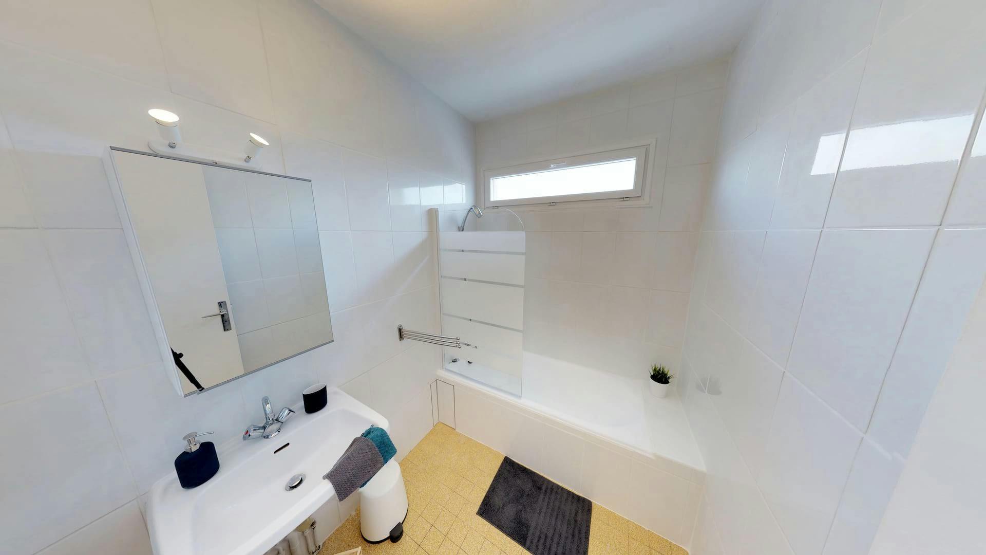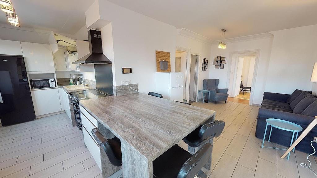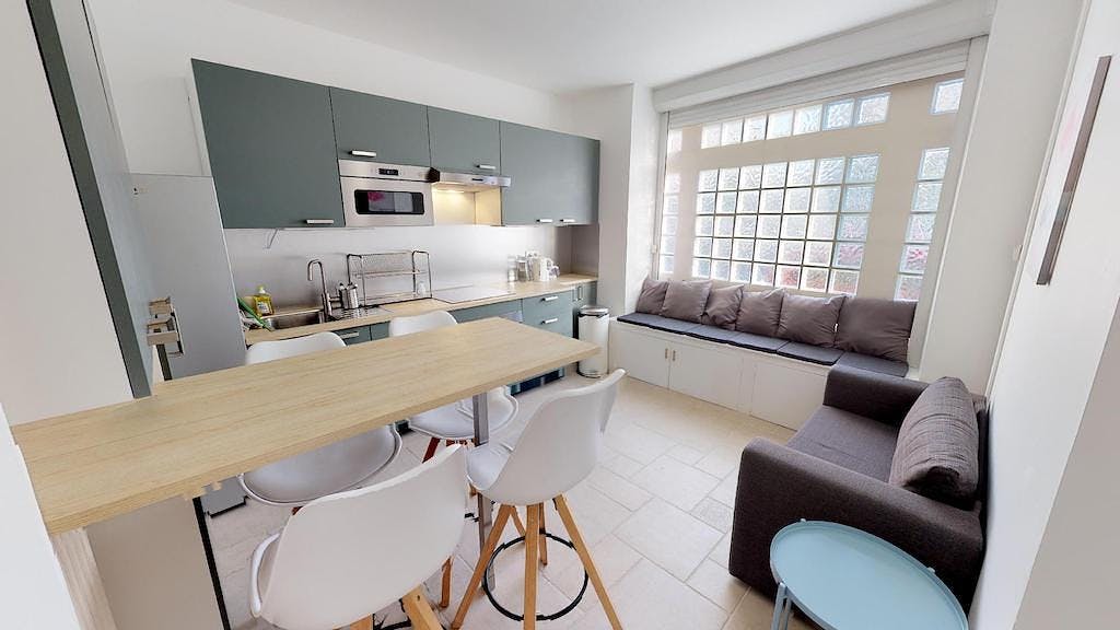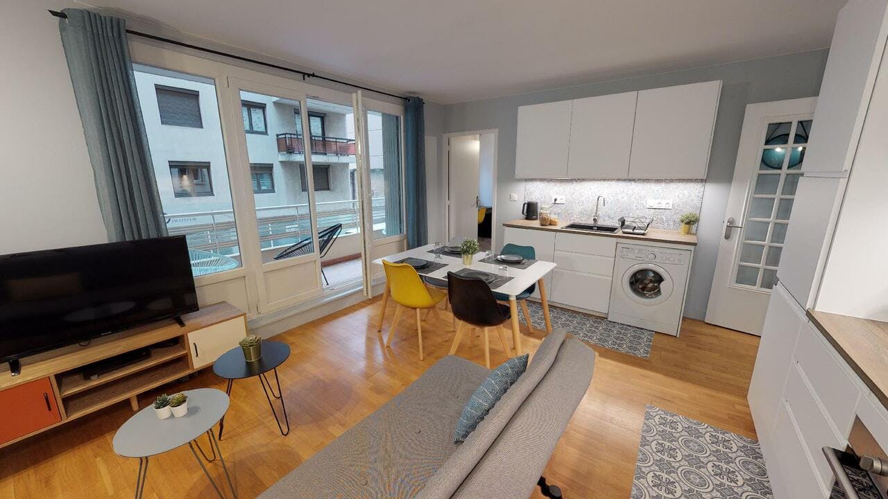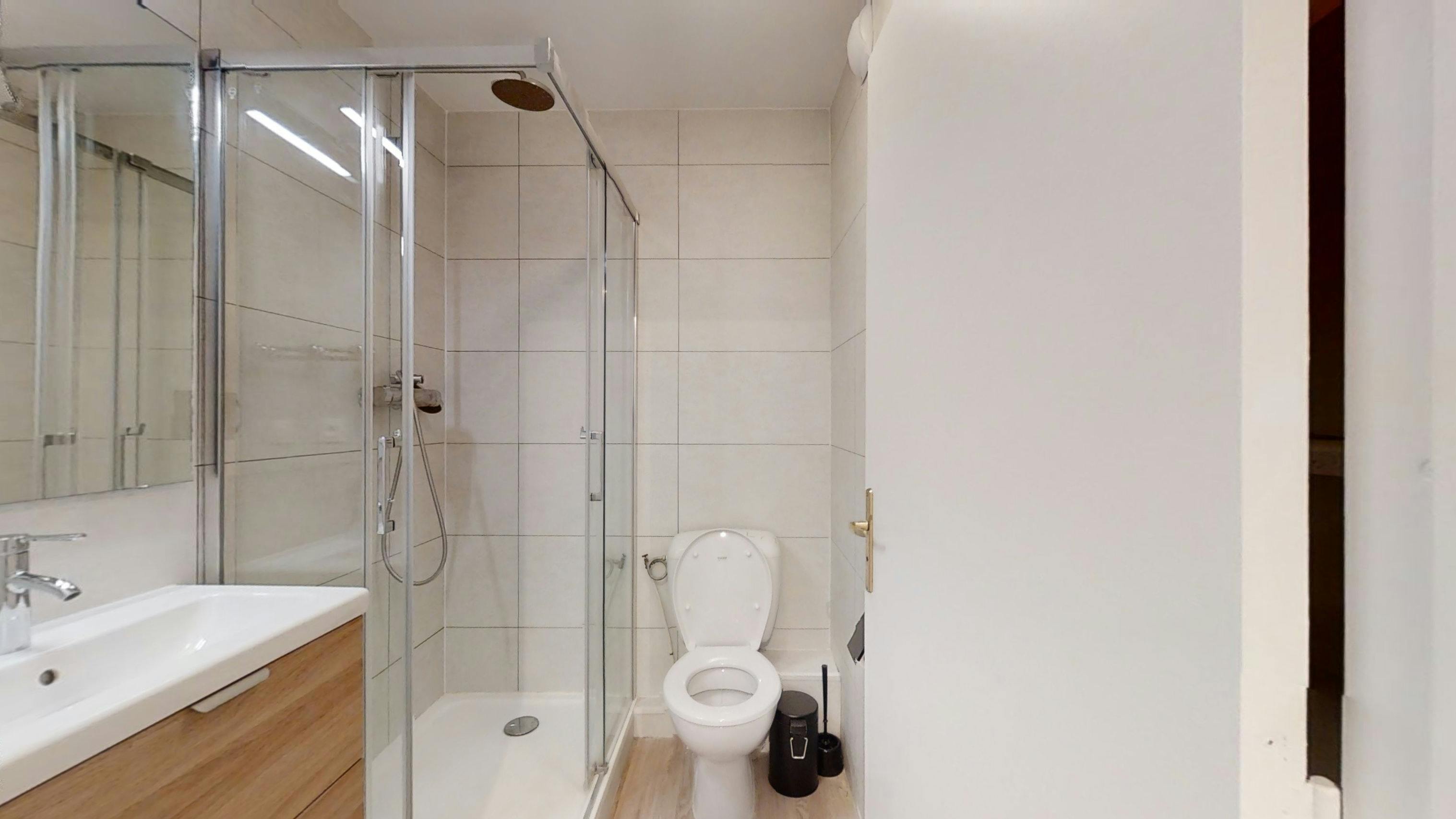 This lovely private bedroom in a fully equipped, furnished and all-inclusive flatshare in Lyon is a mix of comfort and design. It has got household furnishings, including a bed with pillows and duvet What is missing is your things to feel at home! The room can be locked if you need intimacy. The flatshare can be found in the Monchat neighborhood, in the heart of Lyon. Plenty of shops, public transports, restaurants are accessible close by. The apartment is on floor 0 without lift. It is entirely equipped and is composed of a large kitchen with refrigerator, microwave, pans, crockery, kitchen ustensils, kettle... The accommodation also contains an ironing board, a washing machine, a clothes rack, an iron. Additionally, you will find cleaning items in the accommodation: bagless hoover, dustpan and brush, broom, mop and bucket... Every Joivy furnished flatshare includes all expenses: housing insurance, water, electricity, unlimited wi-fi, condominium fees, household waste tax.