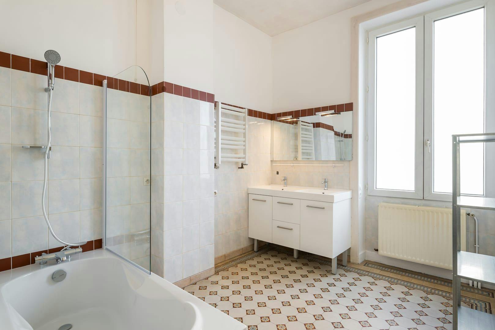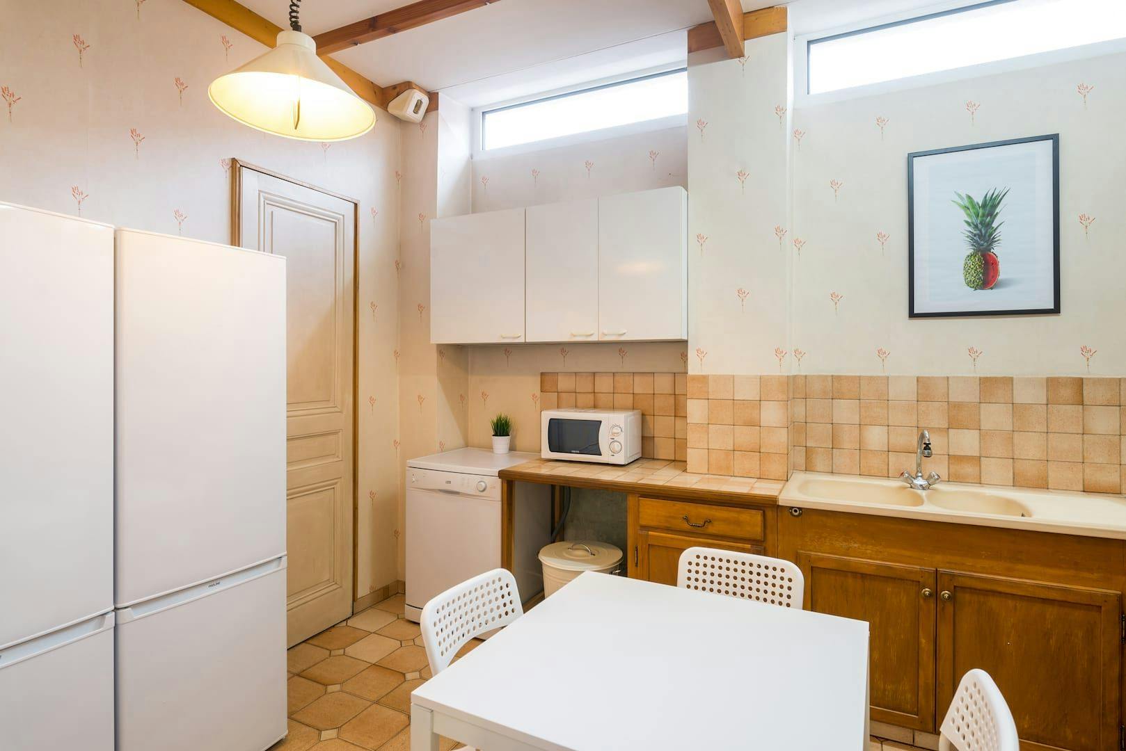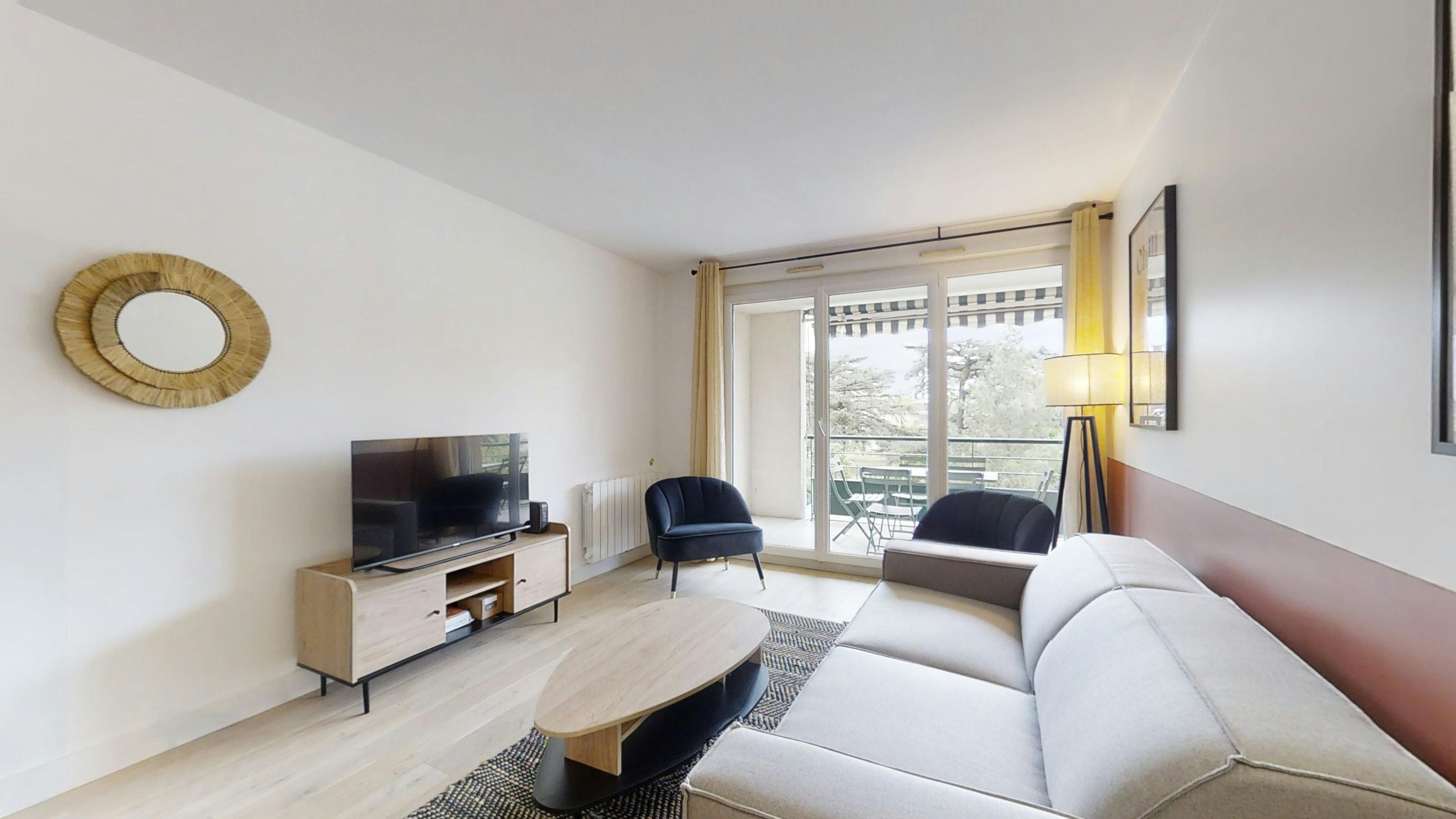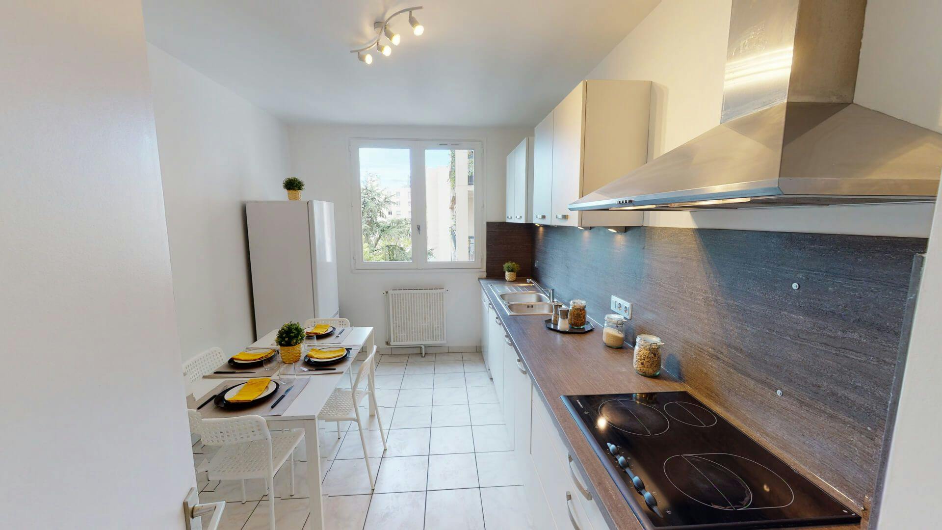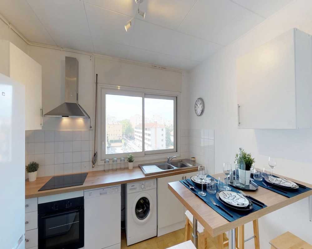 This lovely private bedroom in a fully equipped, furnished and all-inclusive flatshare in Lyon is a mix of comfort and design. It has got household furnishings, including a bed with pillows and duvet What is missing is your things to feel at home! The room can be locked if you need intimacy. The flatshare can be found in the Monchat neighborhood, in the heart of Lyon. Plenty of shops, public transports, restaurants are accessible close by. The apartment is on floor 0 without lift. It is entirely equipped and is composed of a large kitchen with refrigerator, microwave, pans, crockery, kitchen ustensils, kettle... The accommodation also contains an ironing board, a washing machine, a clothes rack, an iron. Additionally, you will find cleaning items in the accommodation: bagless hoover, dustpan and brush, broom, mop and bucket... Every Joivy furnished flatshare includes all expenses: housing insurance, water, electricity, unlimited wi-fi, condominium fees, household waste tax.