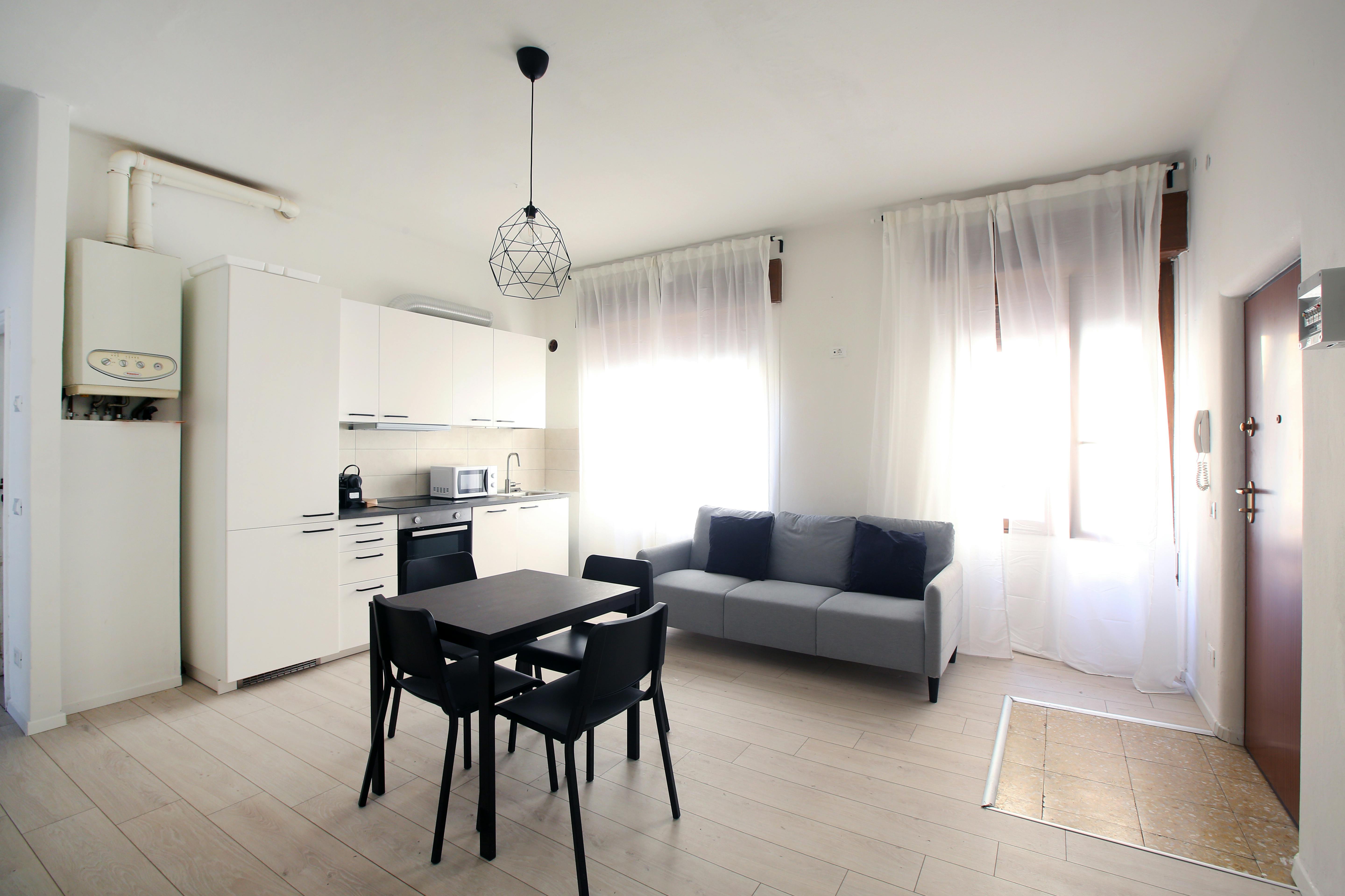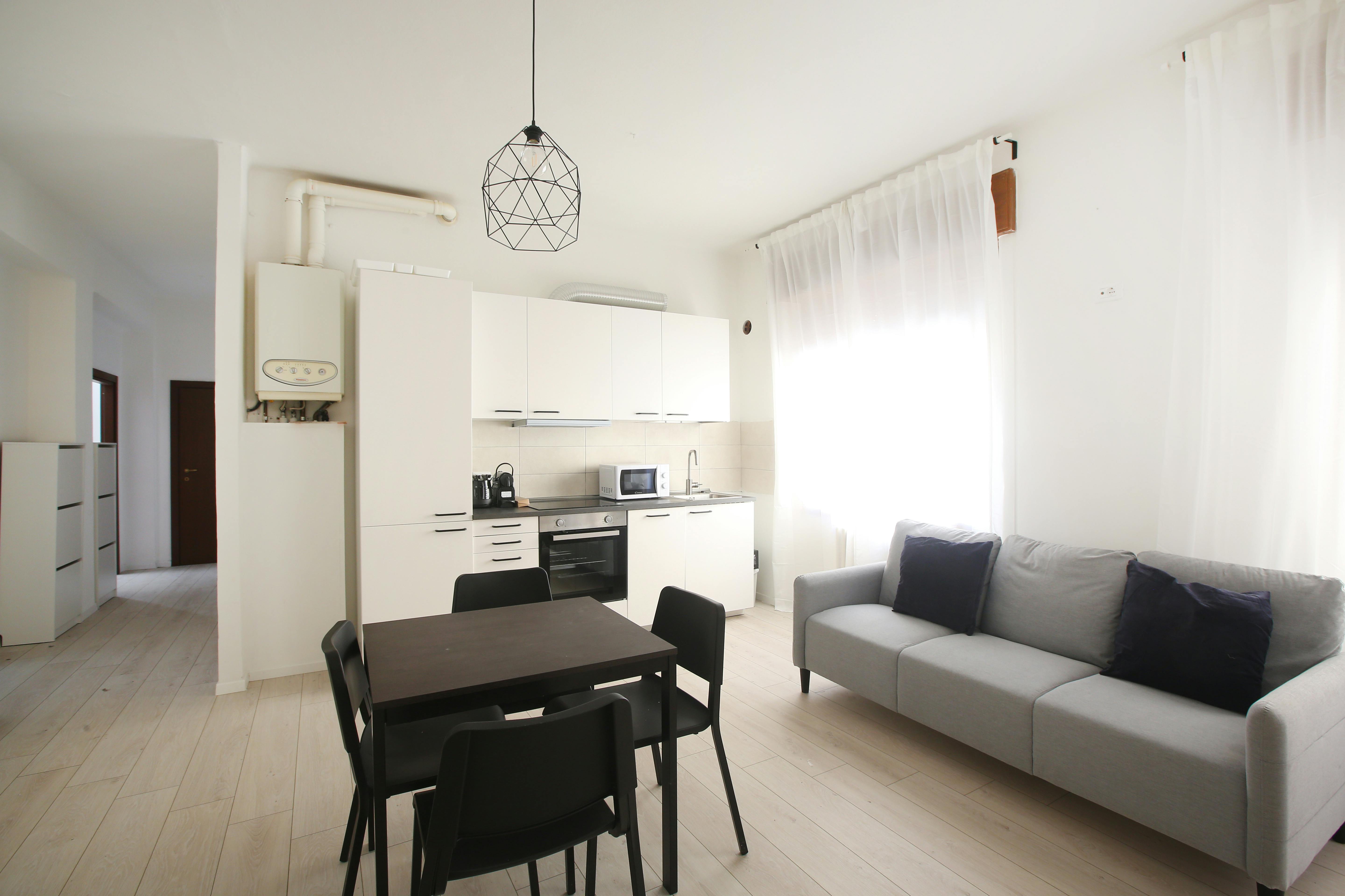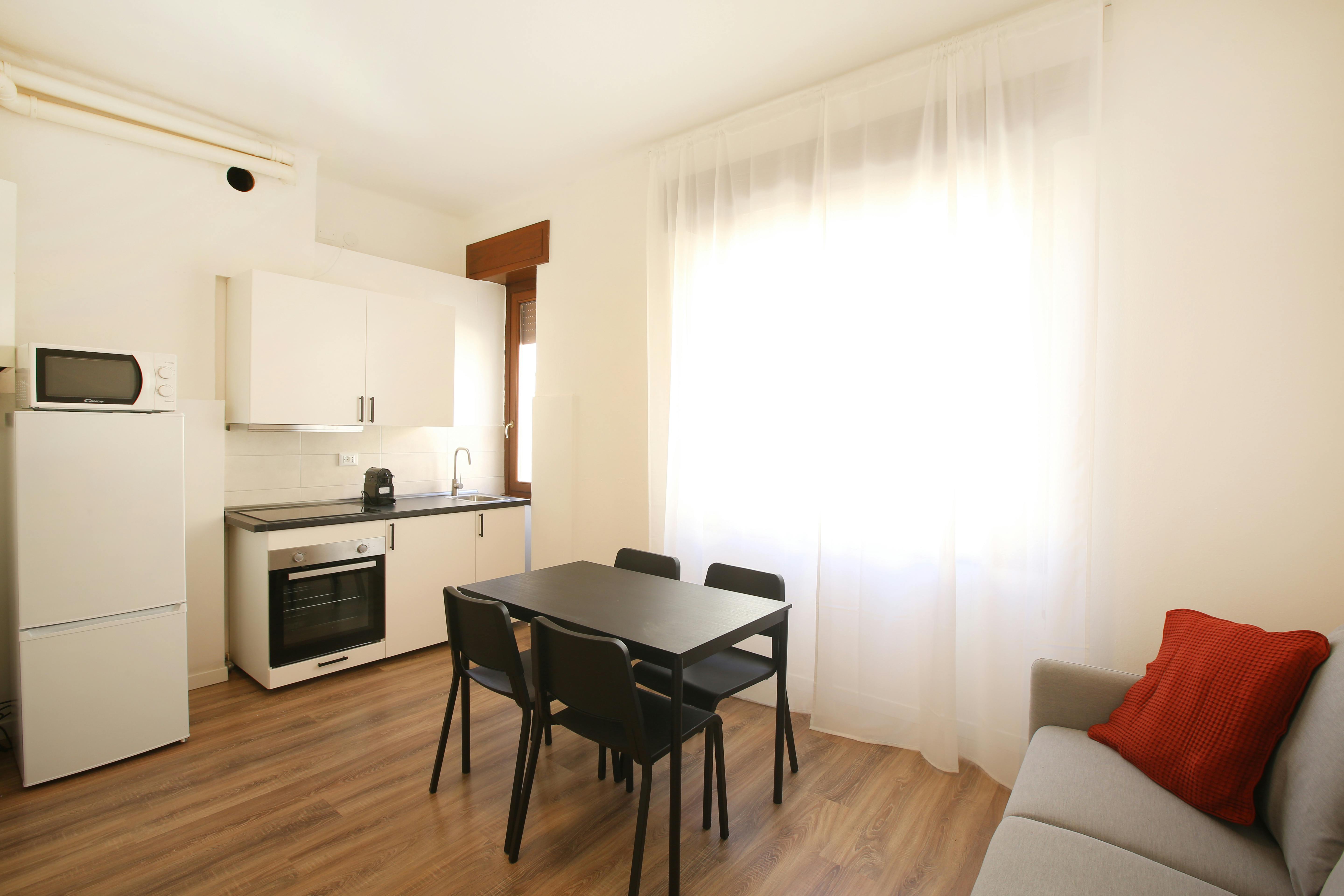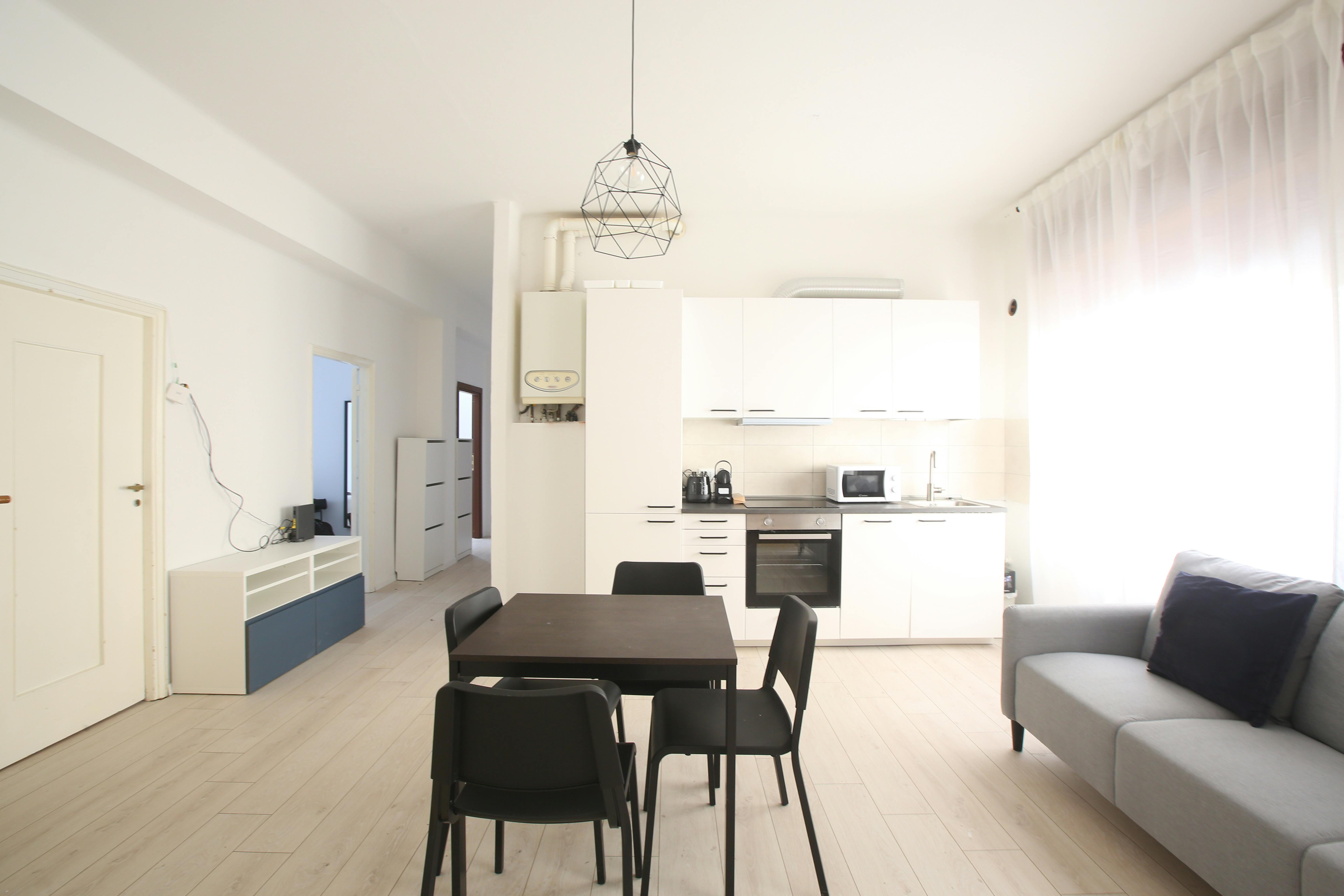 Situato al secondo piano, luminoso e molto spazioso. 90 mq di superficie. È composto da cucina abitabile, 2 bagni e 4 stanze singole. L'appartamento è ottimamente ristrutturato in funzione di tutto ciò che occorre ai nostri studenti. Dotato di WI-FI, lavatrice, cucina equipaggiata.