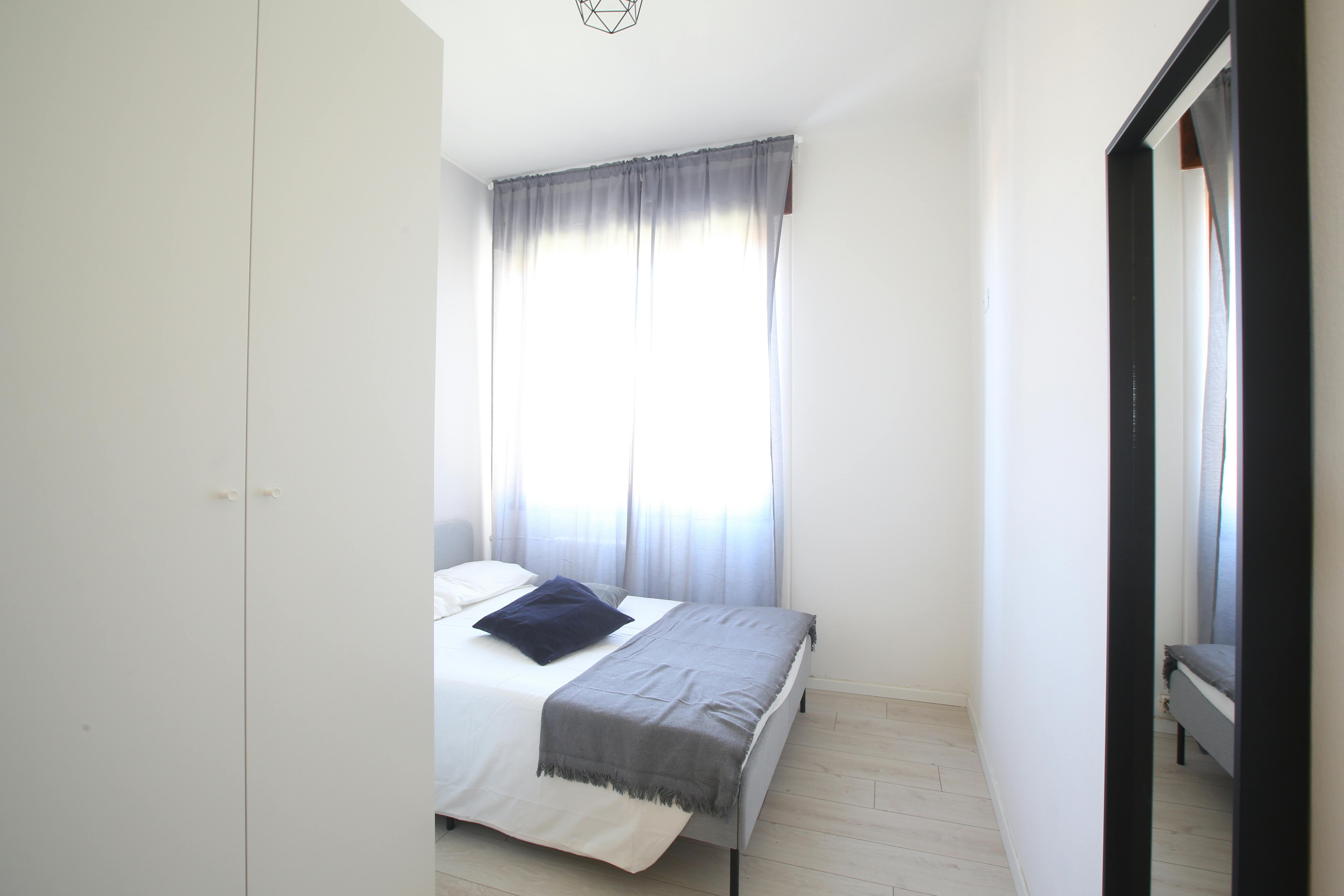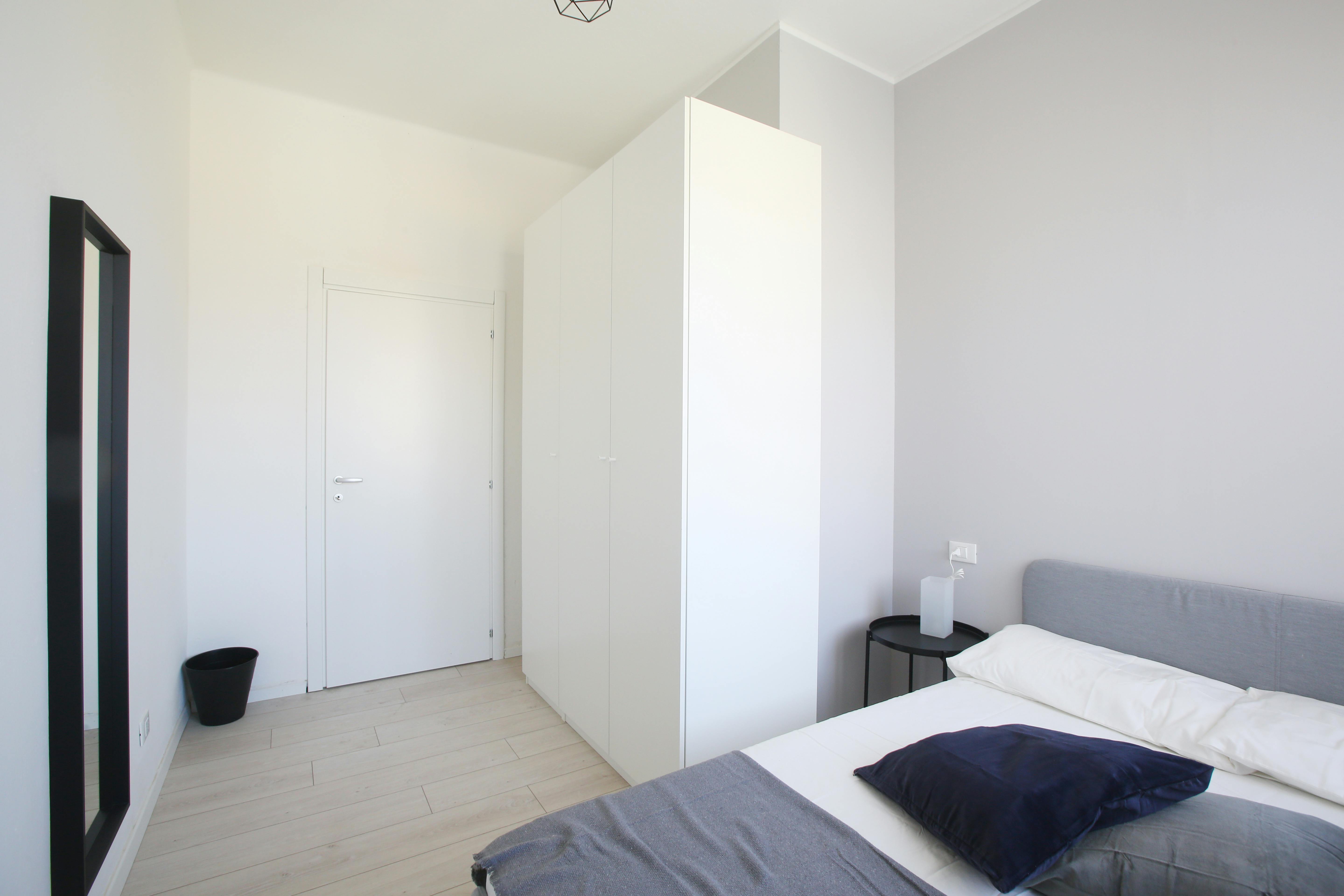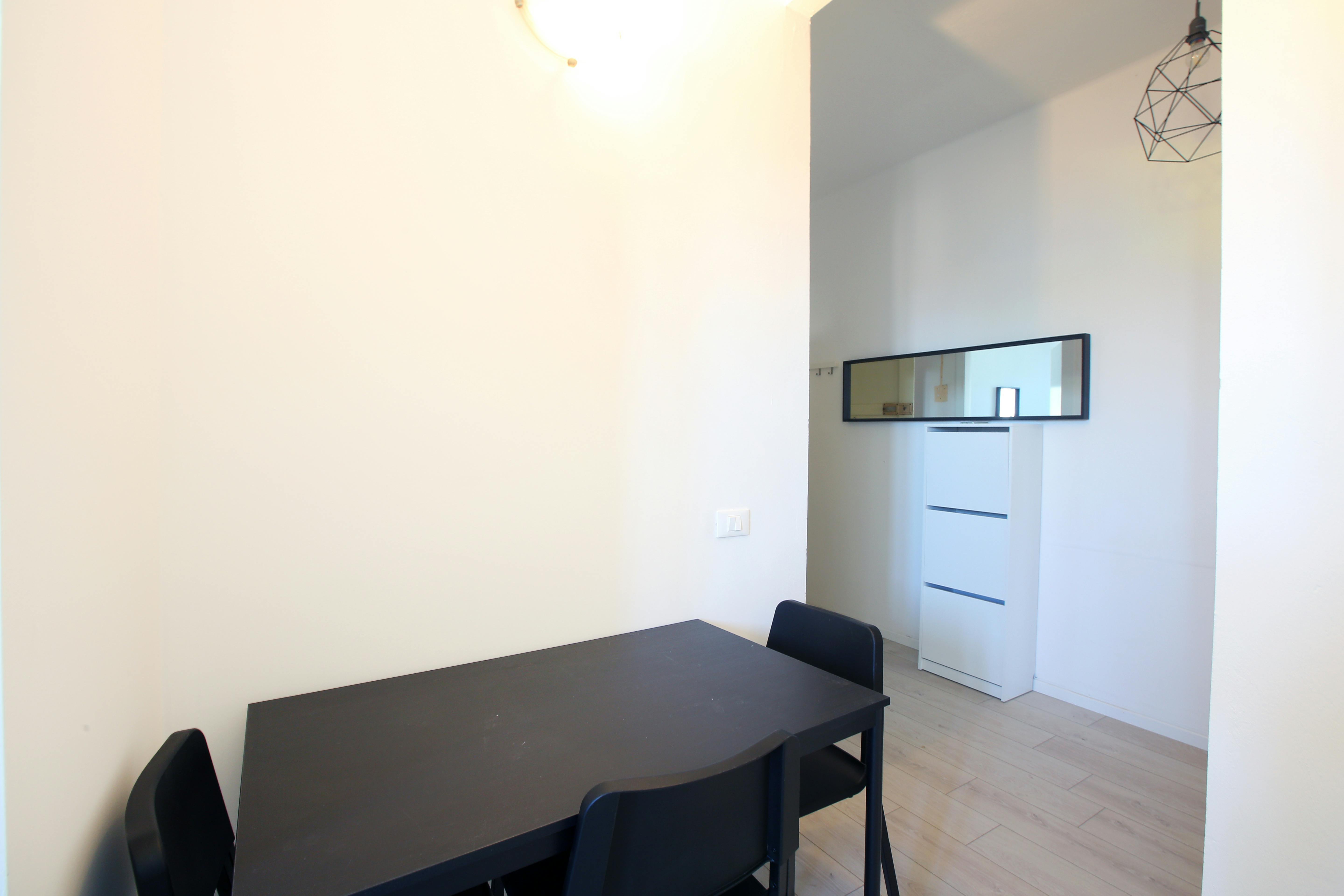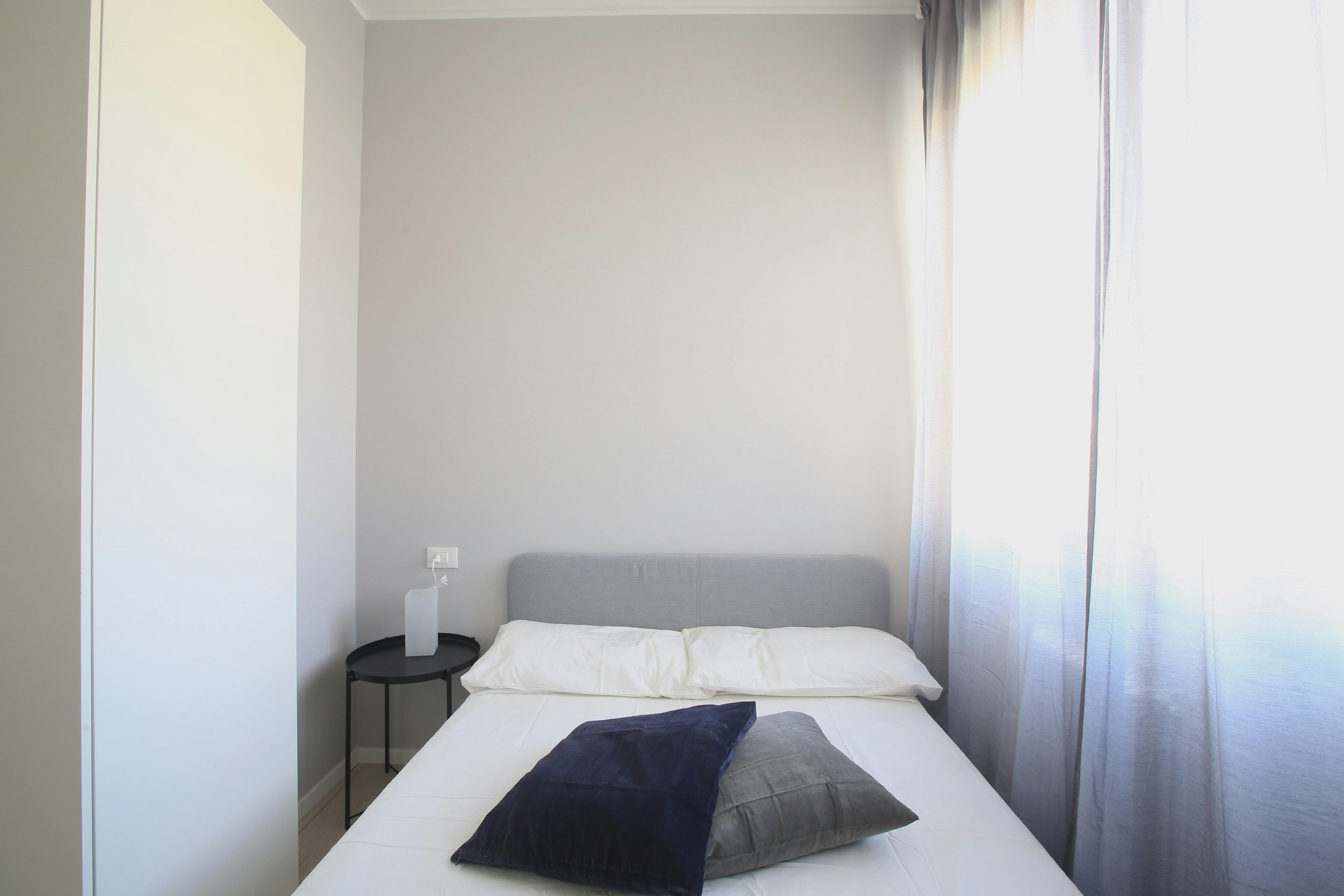We rent a beautiful single room Stanza Semplice renovated specifically to offer comfort and convenience to our students, in a strategic and sought-after location. The room is equipped with a single bed, a 3-door wardrobe, a desk, a bedside table, curtains, a shoe rack and a bookcase.