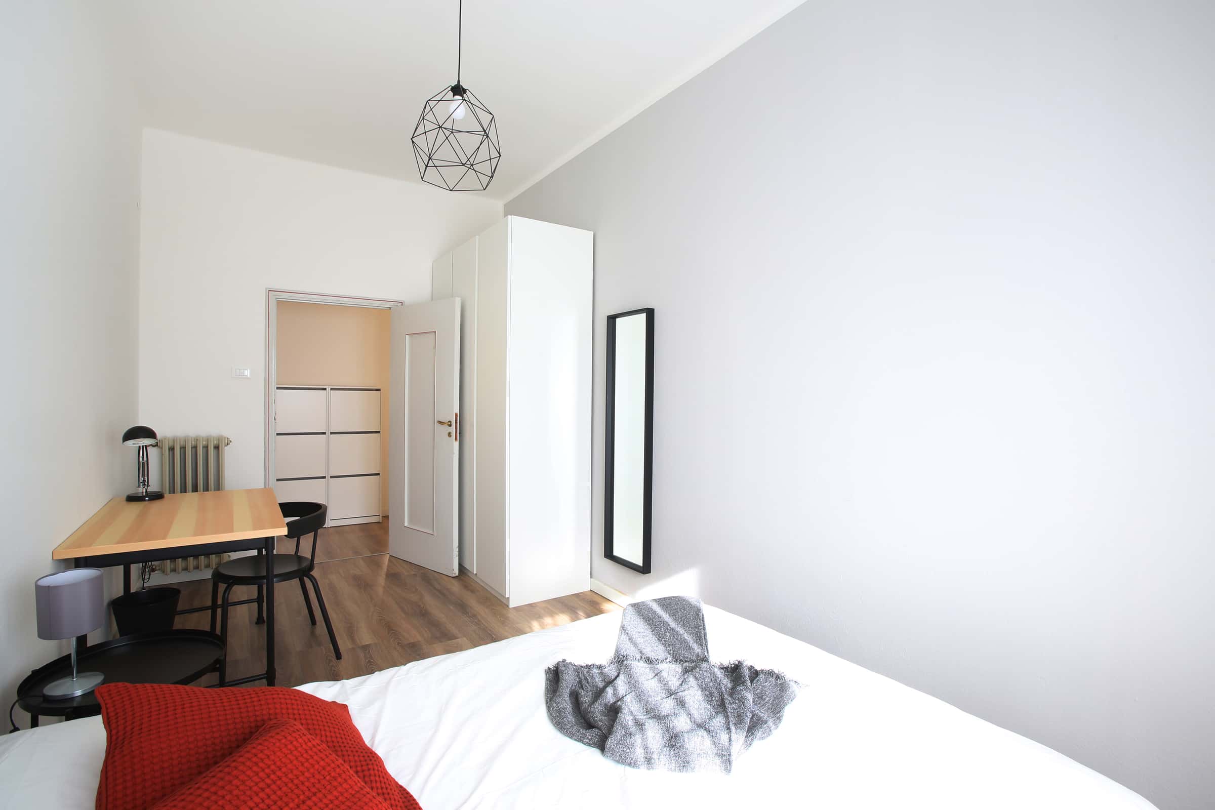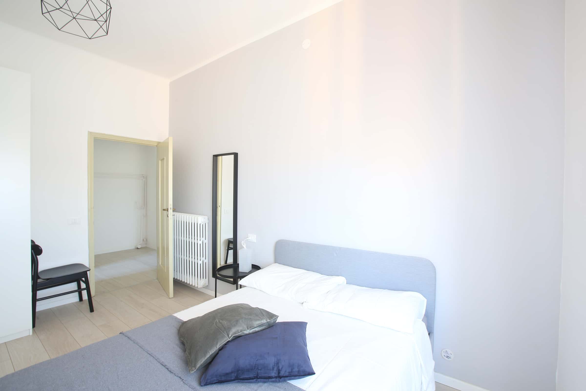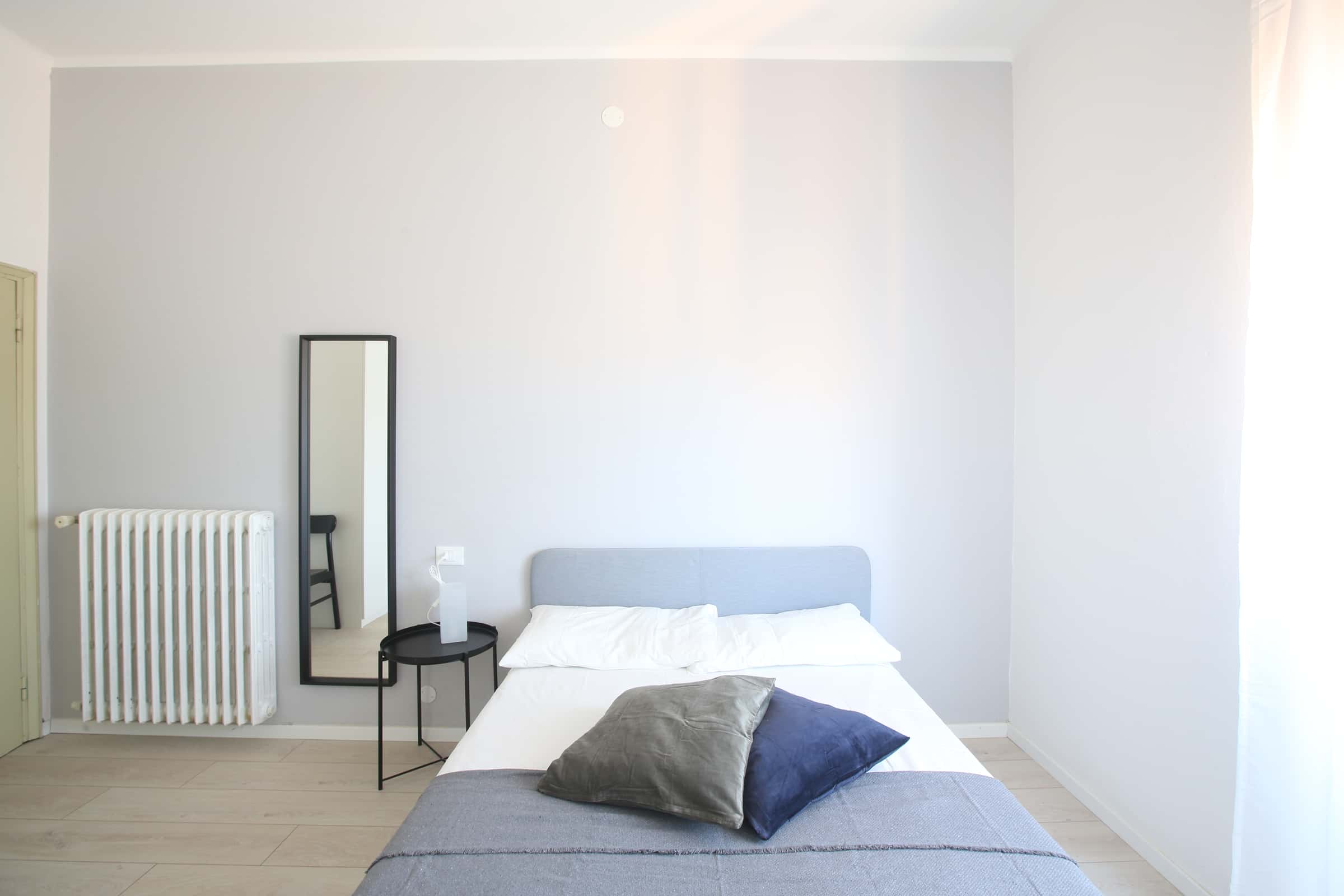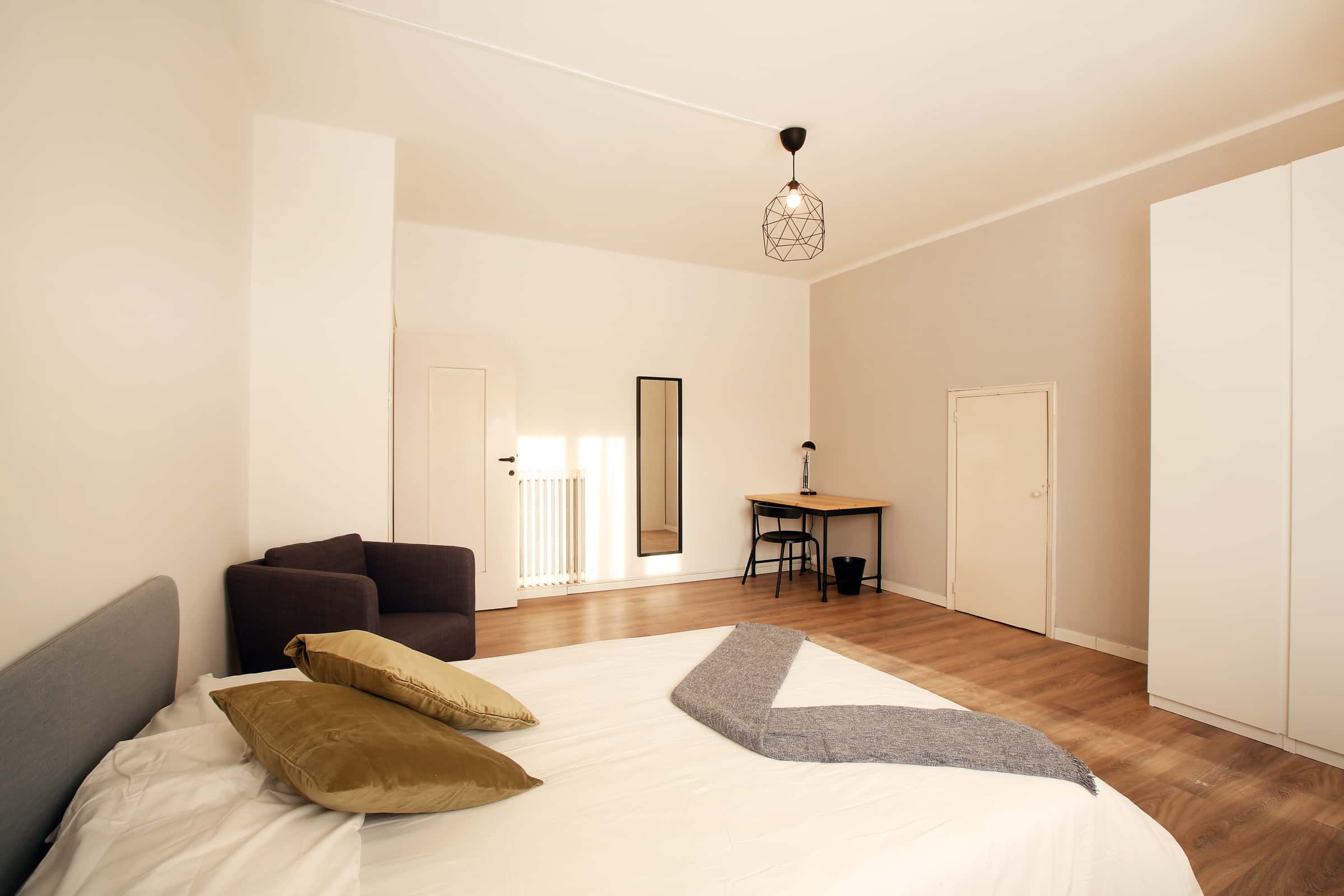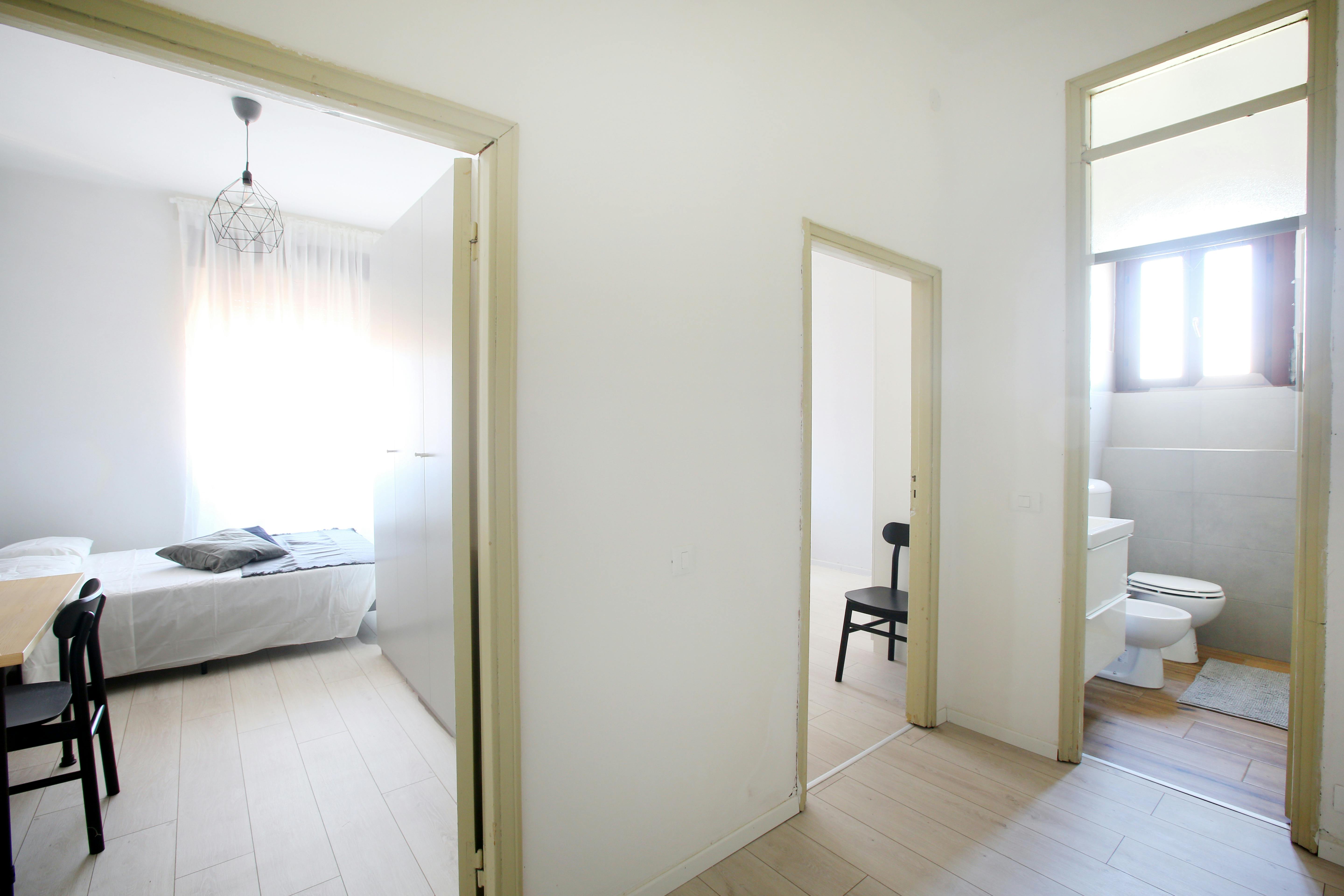 We rent a beautiful single room Stanza Semplice renovated specifically to offer comfort and convenience to our students, in a strategic and sought-after location. The room is equipped with a single bed, a 3-door wardrobe, a desk, a bedside table, curtains, a shoe rack and a bookcase.