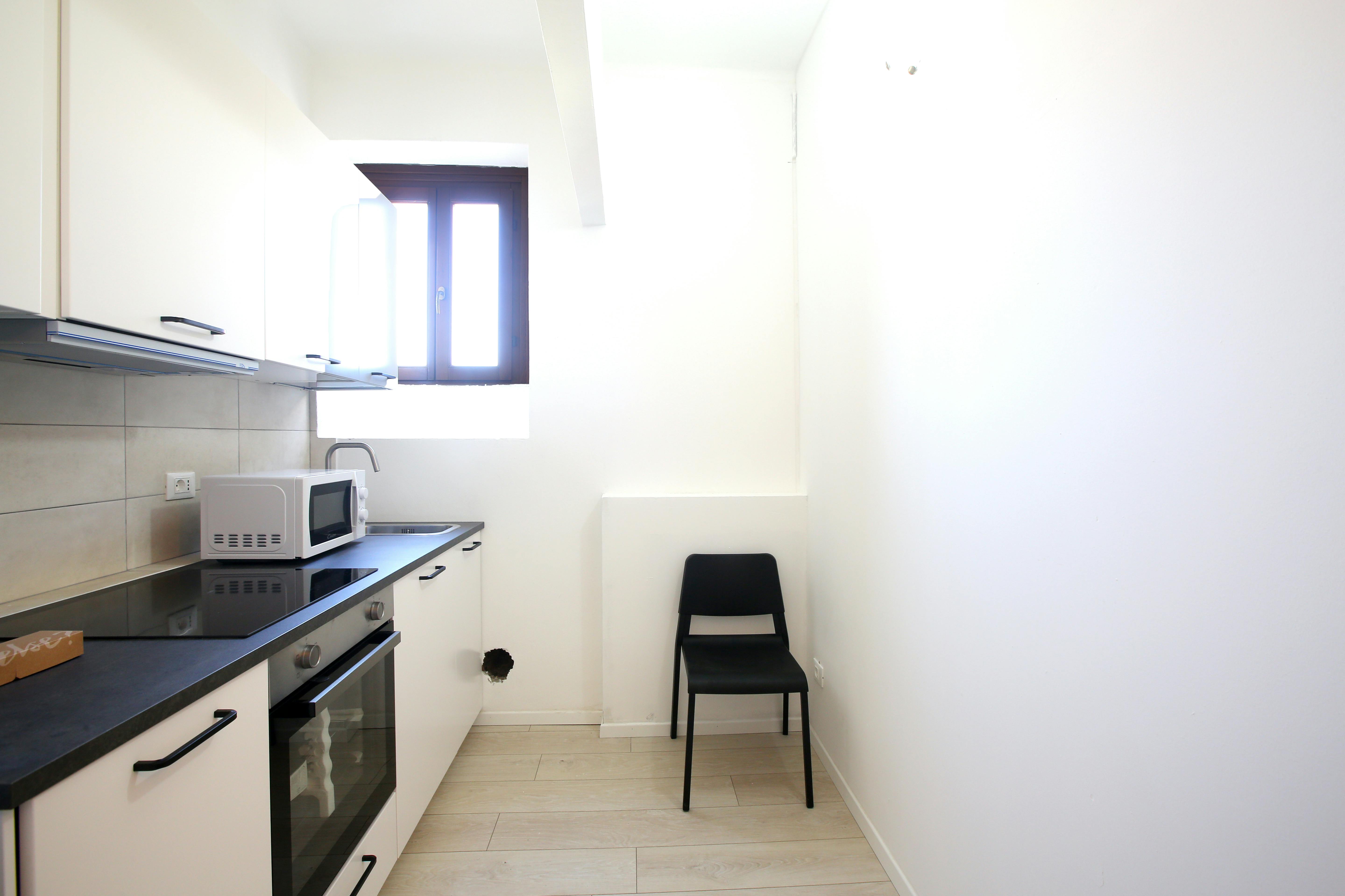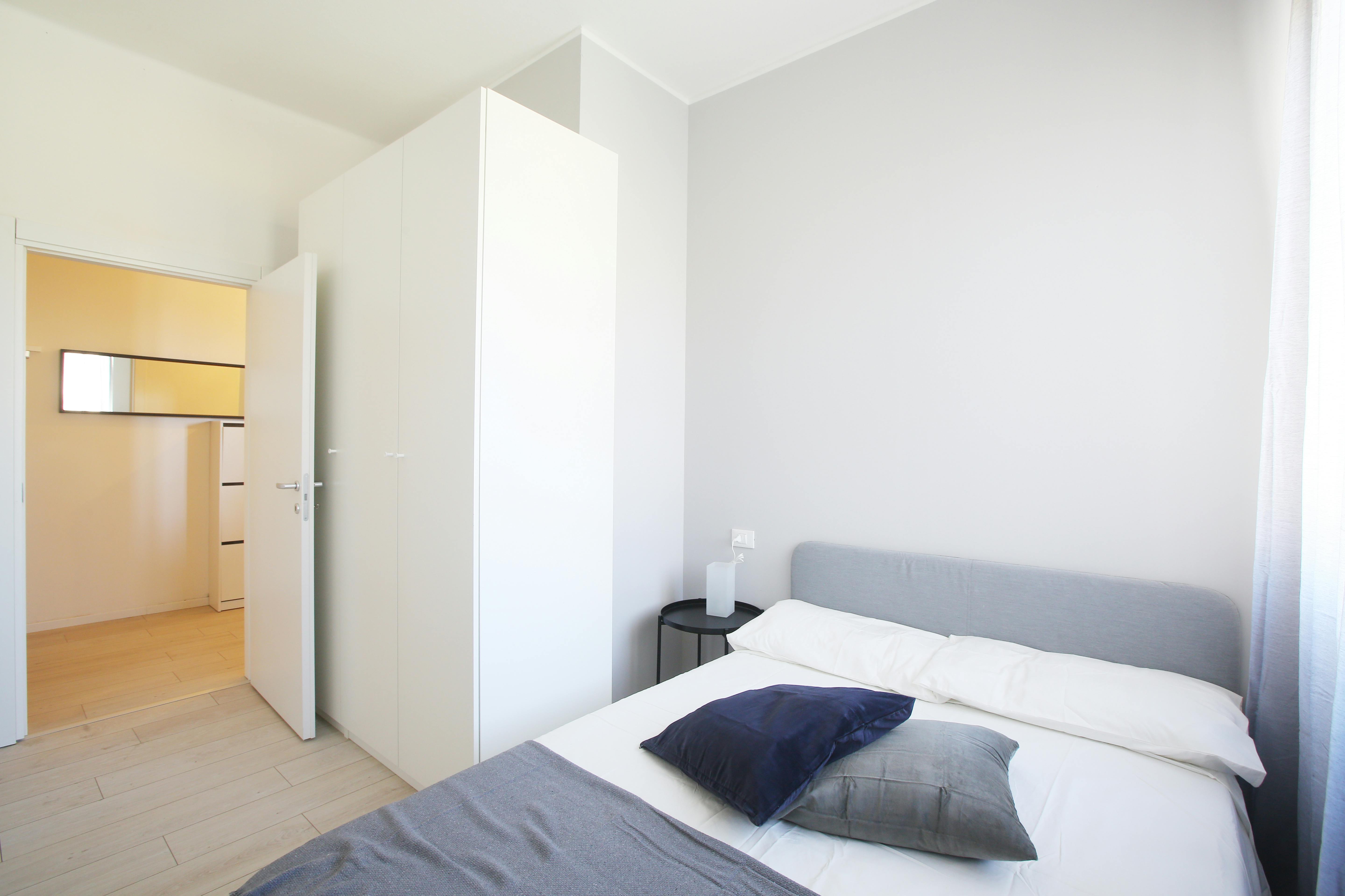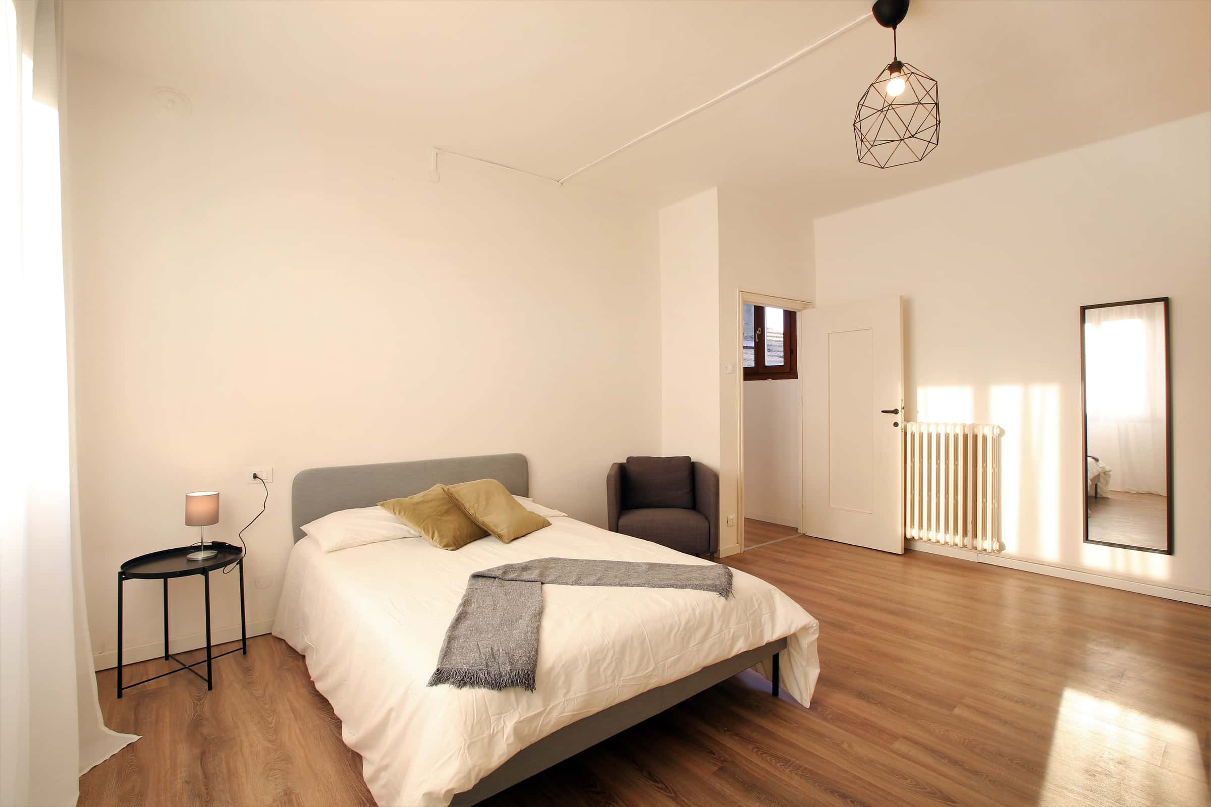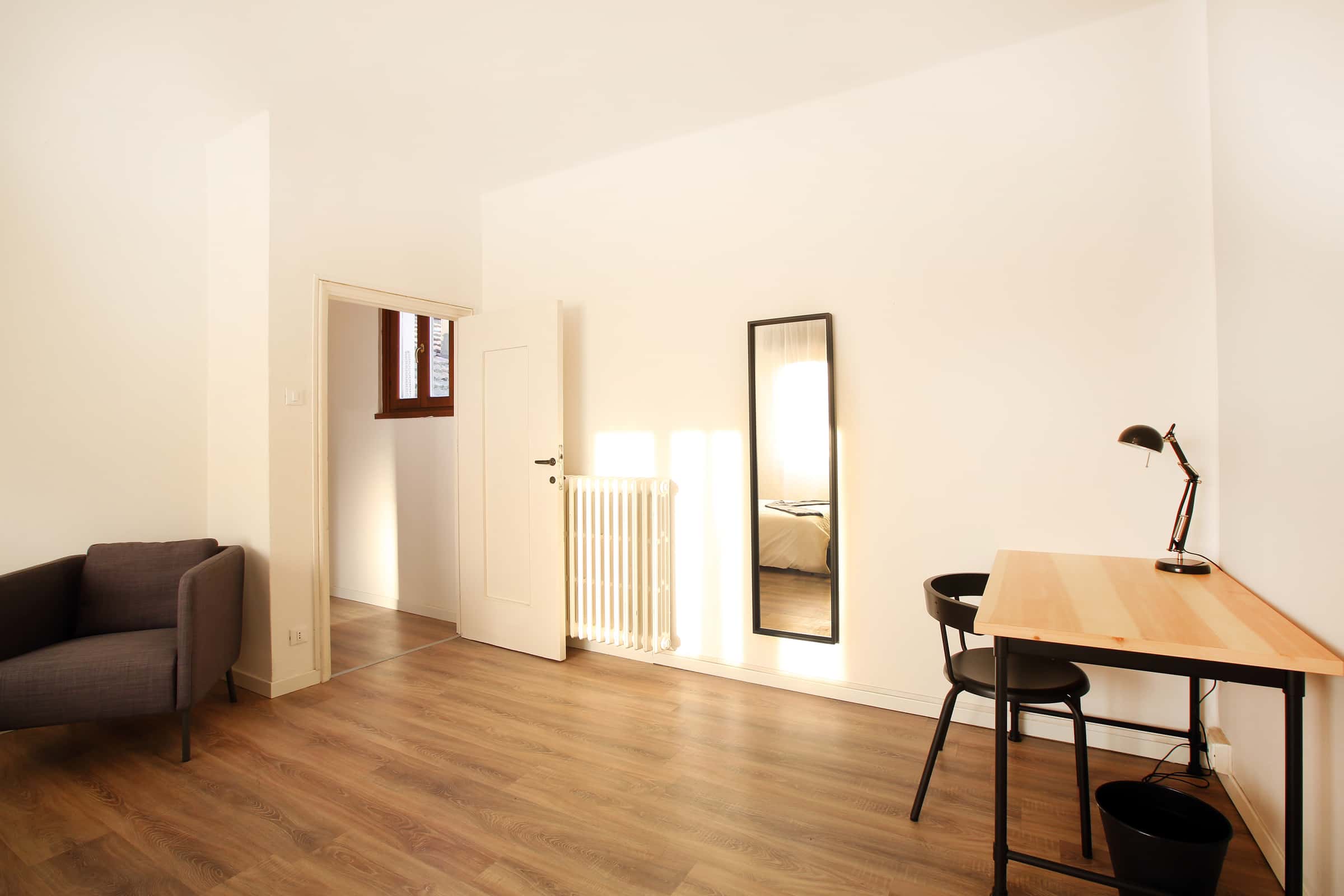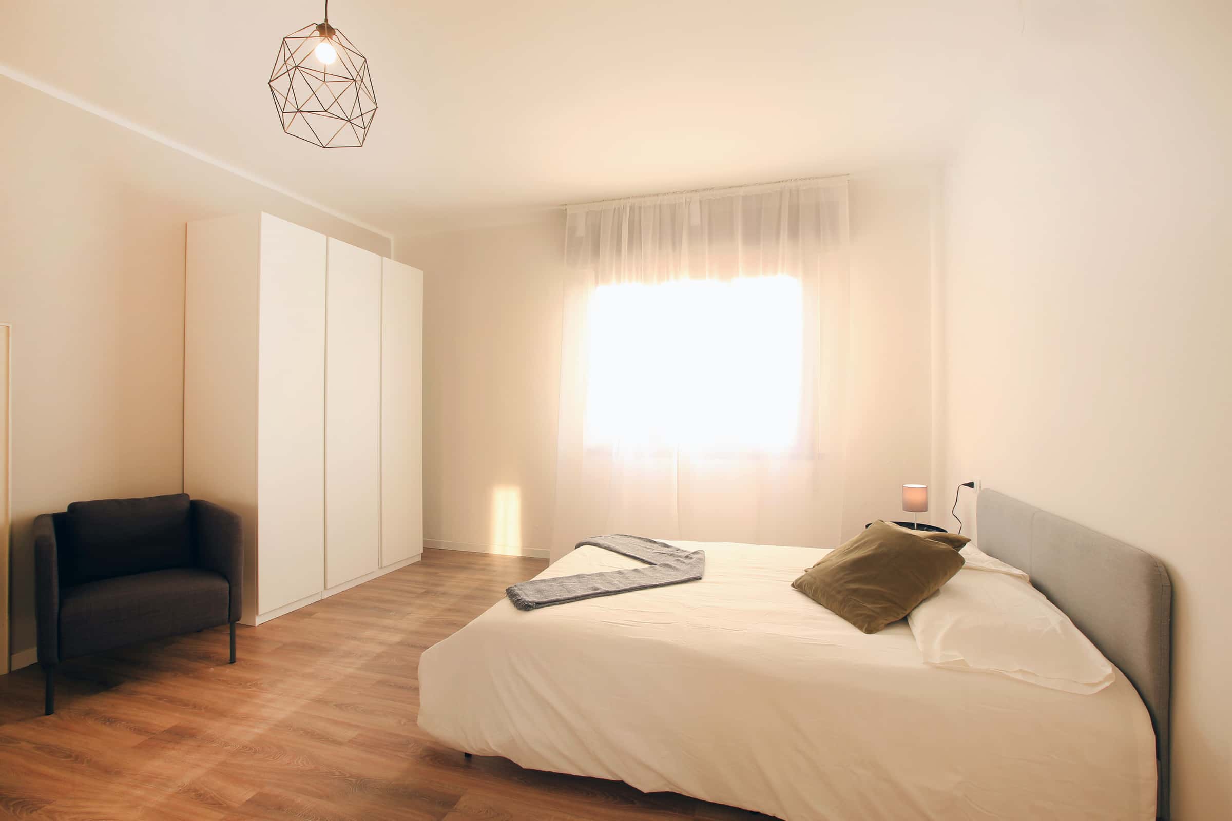 We rent a beautiful single room Stanza Semplice renovated specifically to offer comfort and convenience to our students, in a strategic and sought-after location. The room is equipped with a single bed, a 3-door wardrobe, a desk, a bedside table, curtains, a shoe rack and a bookcase.